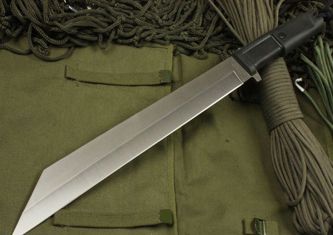 极端武力坦托3300 全长:44cm 刃长:31cm 柄长:13cm 刃厚:0.57cm 刃宽: 4.2cm 刃材: 5Cr13 柄材: 橡塑 硬度: 56HRC 净重:540克 毛重:1160克 表面处:镀钛 其他:配磨刀石+拆装工具