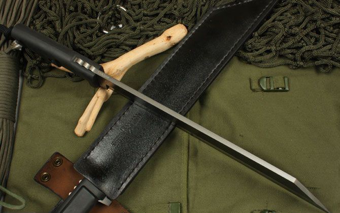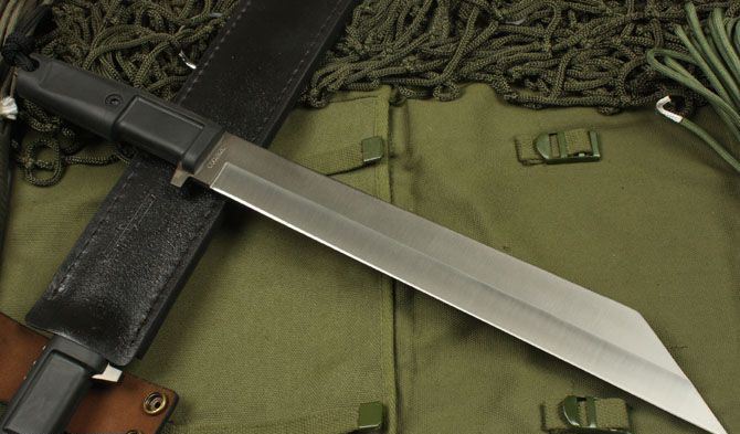 全长:44cm 刃长:31cm 柄长:13cm 刃厚:0.57cm 刃宽: 4.2cm 刃材: 5Cr13 柄材: 橡塑 硬度: 56HRC 净重:540克 毛重:1160克 表面处:镀钛 其他:配磨刀石+拆装工具