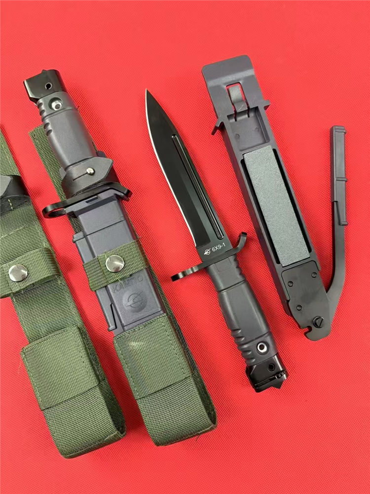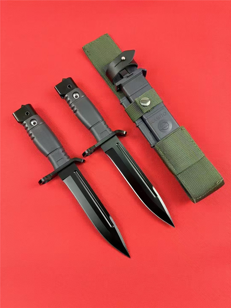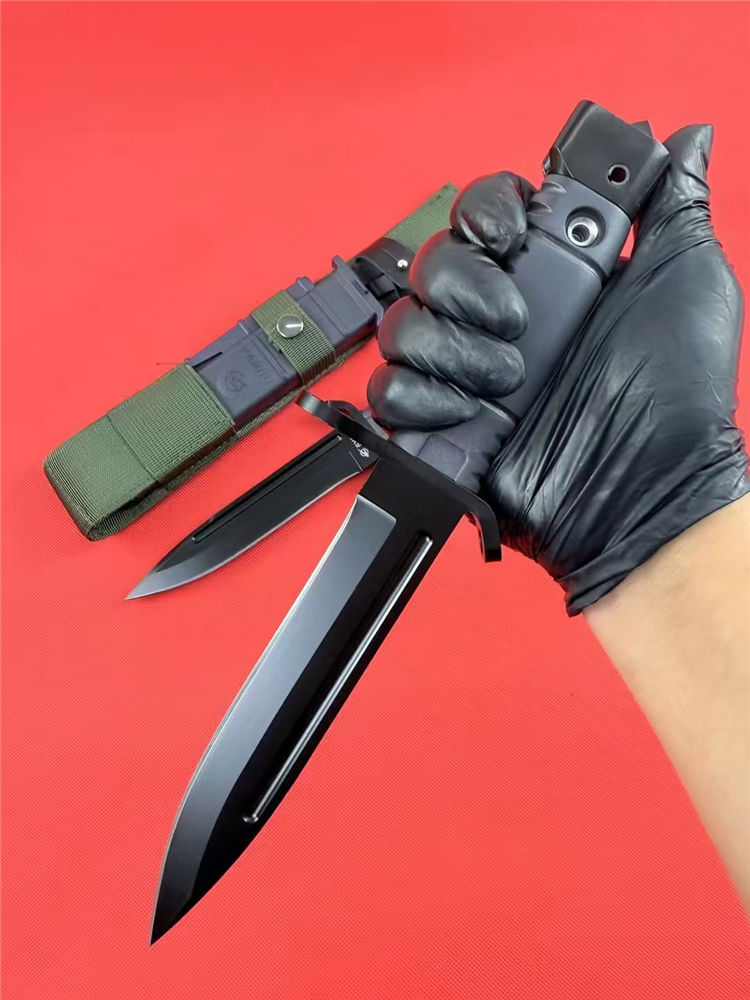 AK12刺刀 全长:30cm 刃宽:3cm 刃长:16.5cm 柄长:13.5cm 刃厚:5mm 刃材:440C 柄材:聚合物 硬度:58-60HRC 刀重:310G 刀鞘:ABS强化工程塑料 刀鞘重量:300G