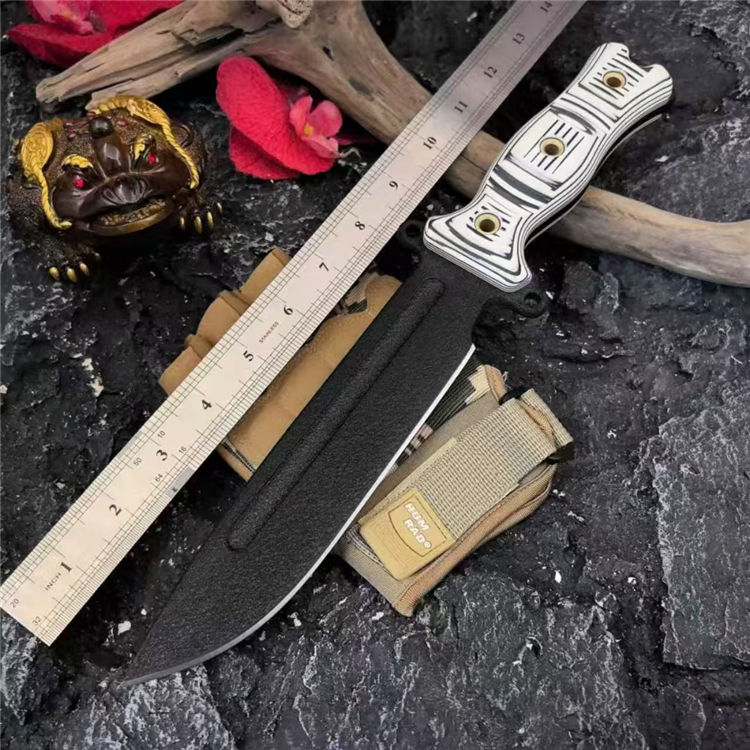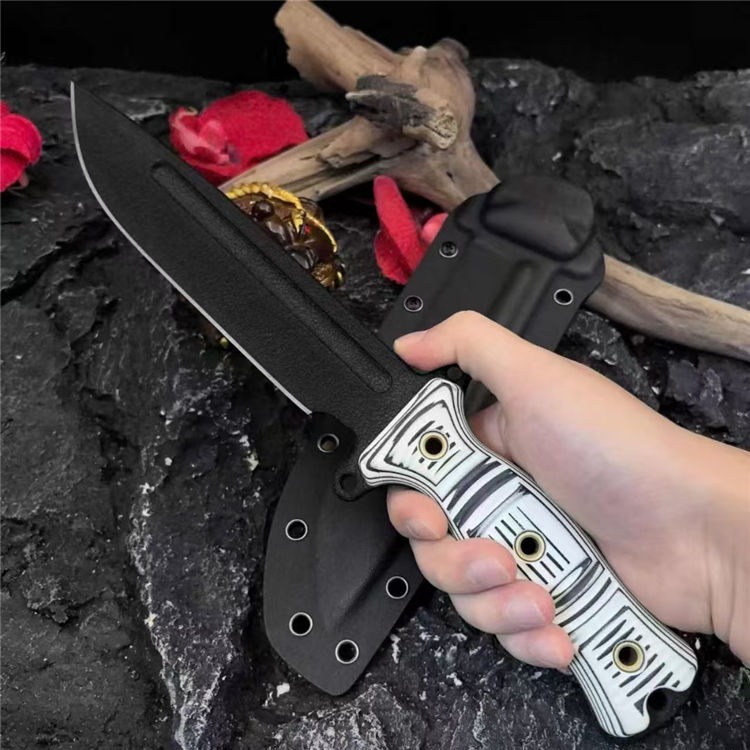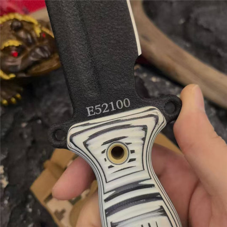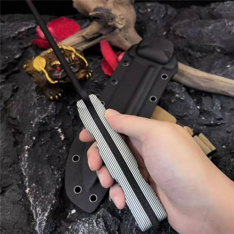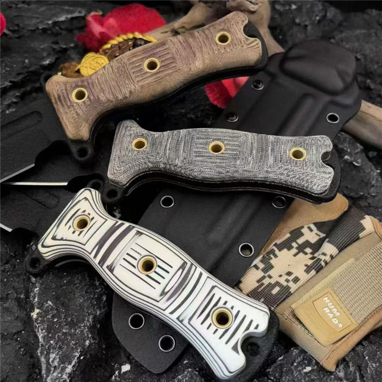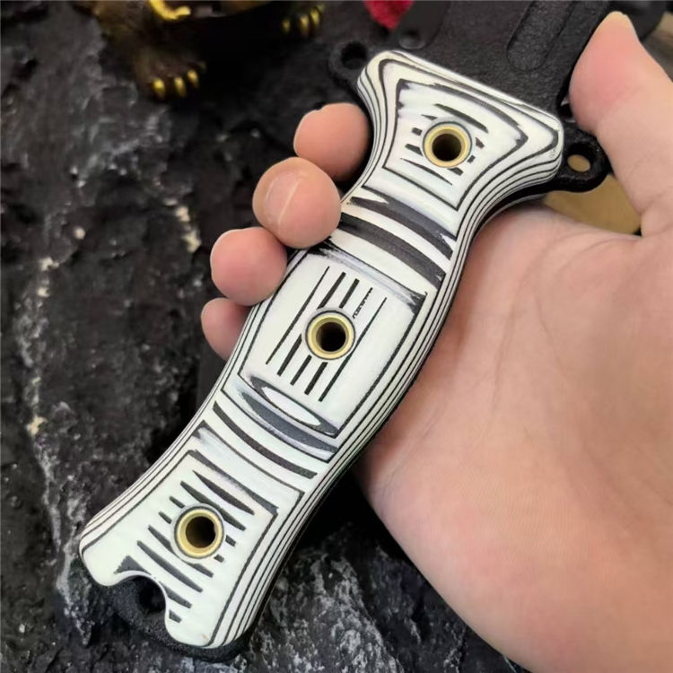 刀柄:黑白米卡塔/棕色米卡塔黑橙G10/黑蓝G10(CNC雕刻3D加工,平面加有横竖槽纹,具有良好的防滑和视绝体验)