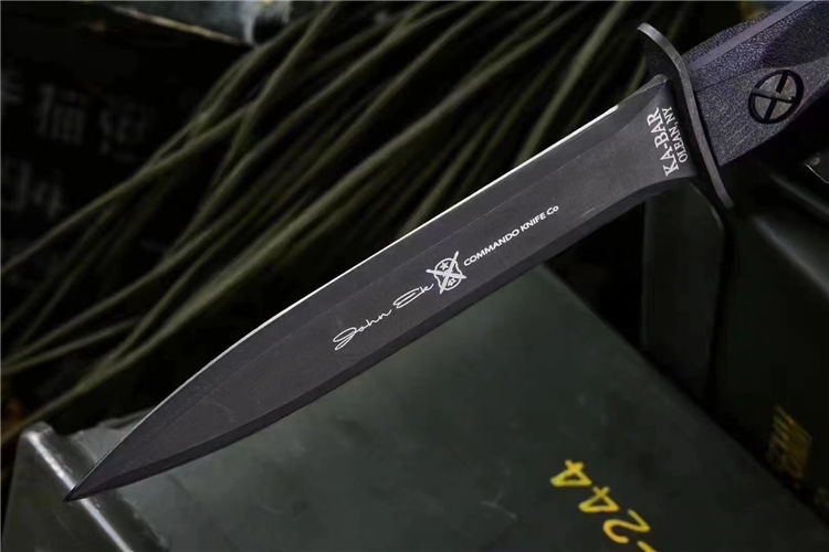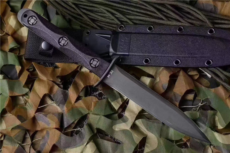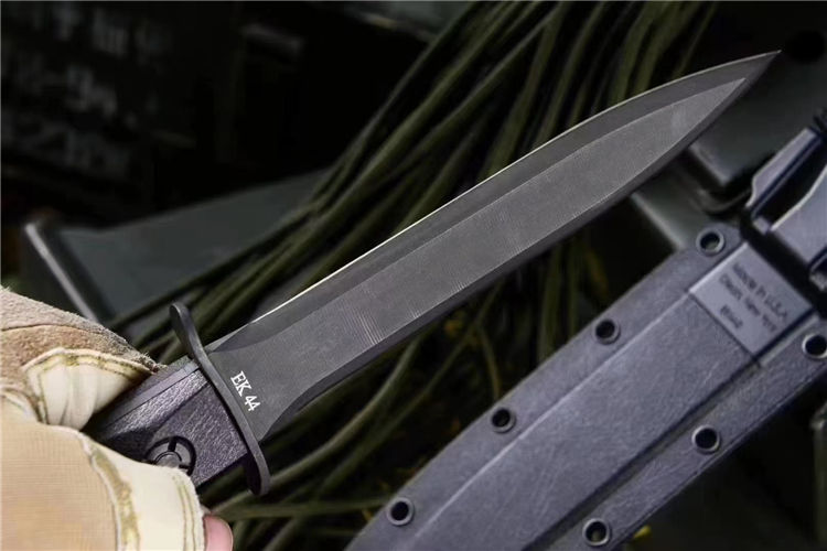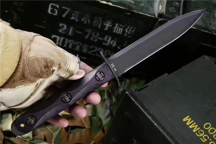 卡巴EK44直刀 全长:320mm 刃长:168mm 刃材:1095 硬度:58HRC 刃厚:4mm 表面:Cro-Van磷酸盐处理 柄材:Filled Nylon 重量:320g