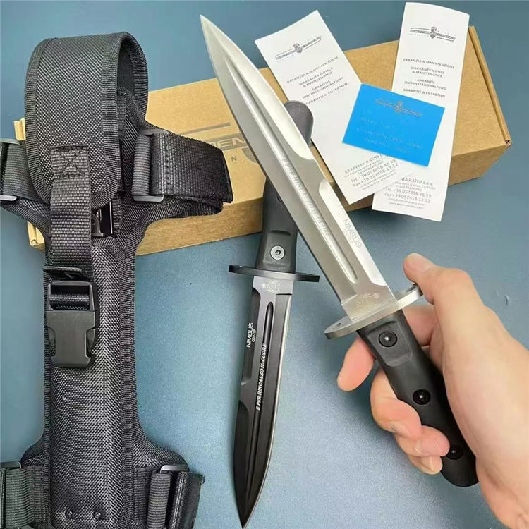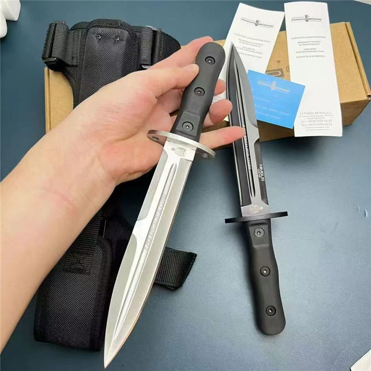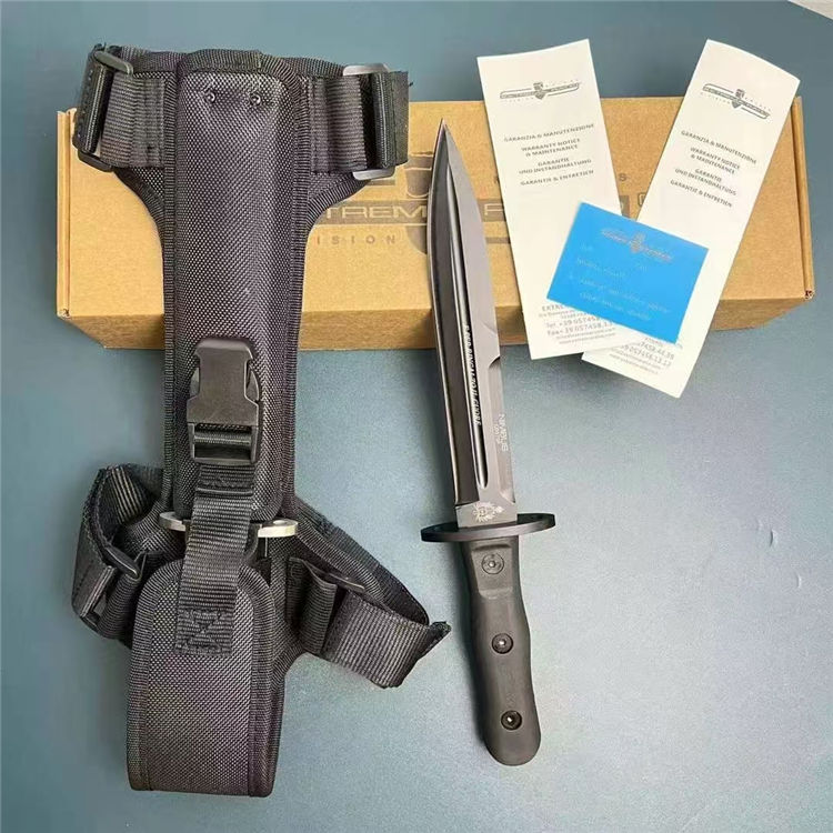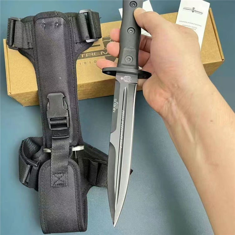 极端武力雨云战术直刀 全长:31cm 刃长:18cm 刃厚:6mm 刃宽:3cm 刃材:N690 硬度:58-60 刀套:K鞘+战术套+绑腿带 重量:400克 包装:礼盒带标