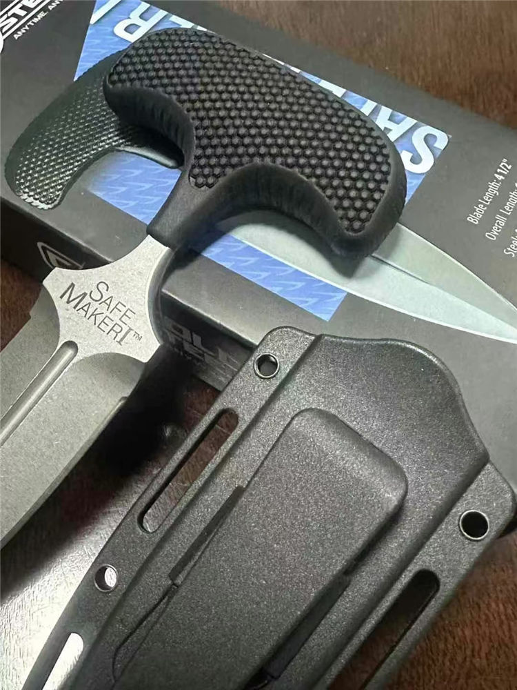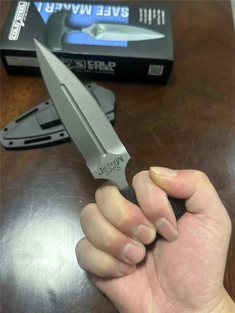 冷钢大号手刺 全长:164mm 刃长:80mm 刃厚:5mm 刃材:AUS8A 硬度:58HRC 重量:98g含鞘137g