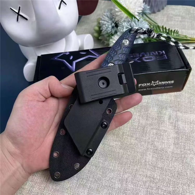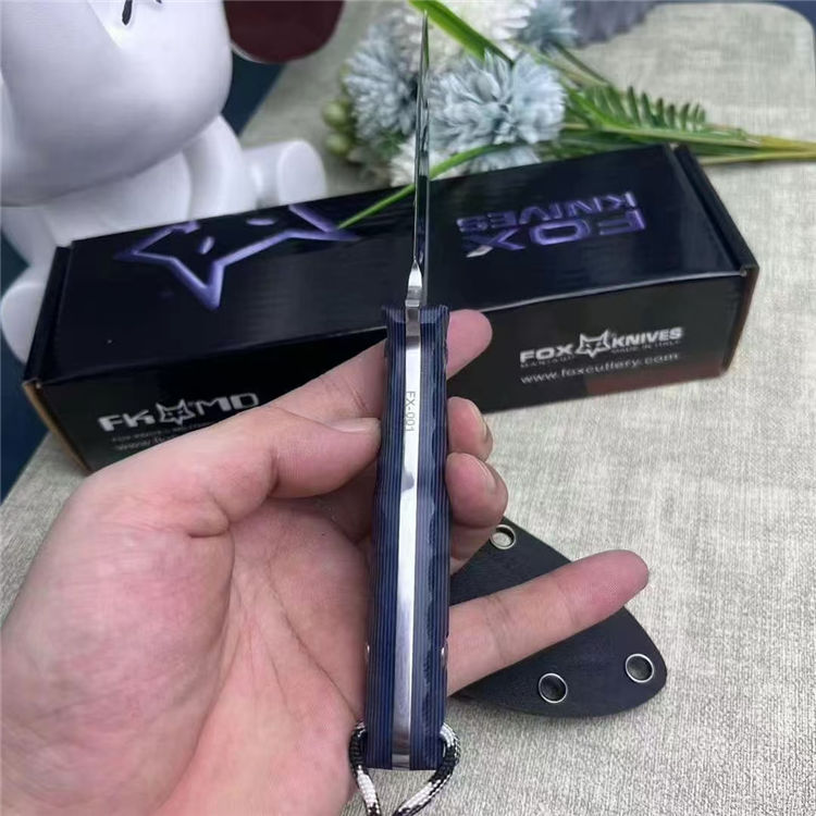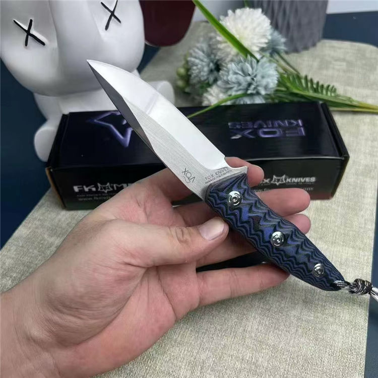 狐狸FX529直刀 全长:23cm 刃长:9.8cm 柄长:12cm 刃宽:3cm 刃厚:4mm 刃材:N690Co钢 刀重:250克 毛重:300克 (含鞘) 硬度:60±HRC 热处理:专业真空深冷让处理油淬二次 表面:超镜面效果+手工拉丝 柄材:双色加厚G10手柄 结构:一体龙骨成形 配套:双层K鞘+旋转背夹 包装:原装礼盒(合作代工出口版简包)