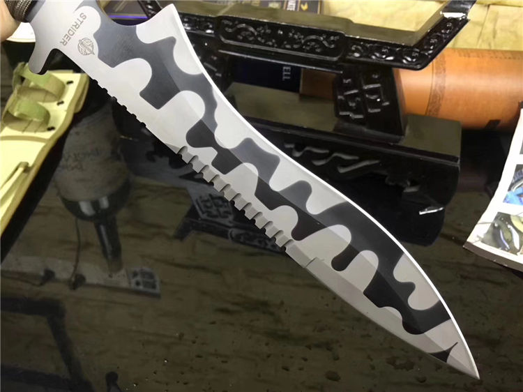 Strider的座右铭是“为硬汉而造的高速工具,致力于生产可以在最恶劣环境下求生使用的刀具。 Strider的刀子,代表着当今专业的战术选择。他的强悍、锐利和独特的美感,使他成为专业的精英部队和收藏家的最佳选择。 精仿Strider 美国亚特兰大刀展品