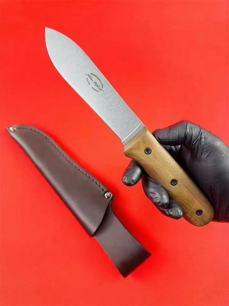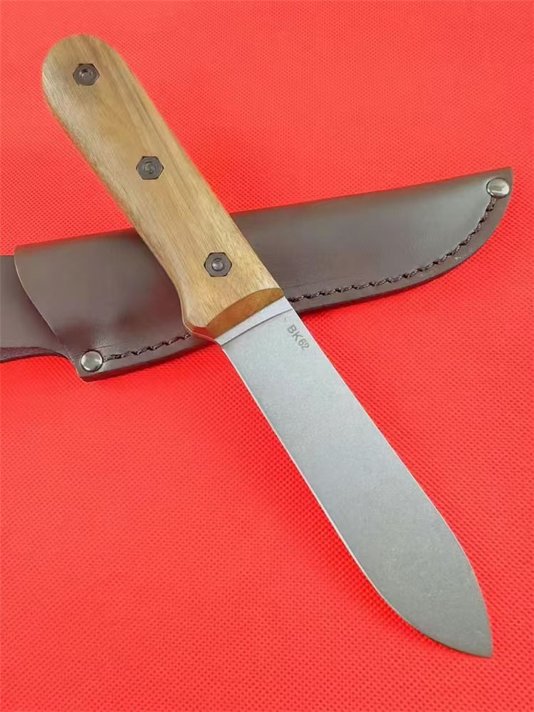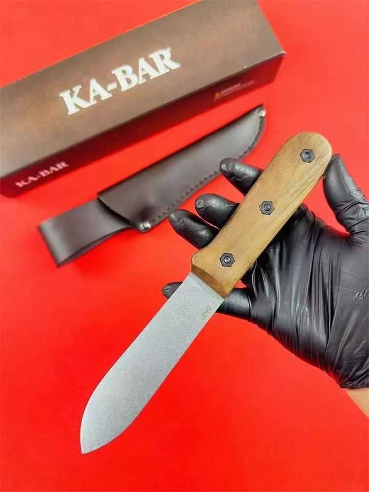 卡巴BK62贝克尔直刀 全长:246mm 刃长:130mm 刃材:1095 CroVan碳钢 刃厚:4mm 硬度:56-58HRC 刃磨:平 表面:石洗 柄材:胡桃木 材料:皮革 重量:181g