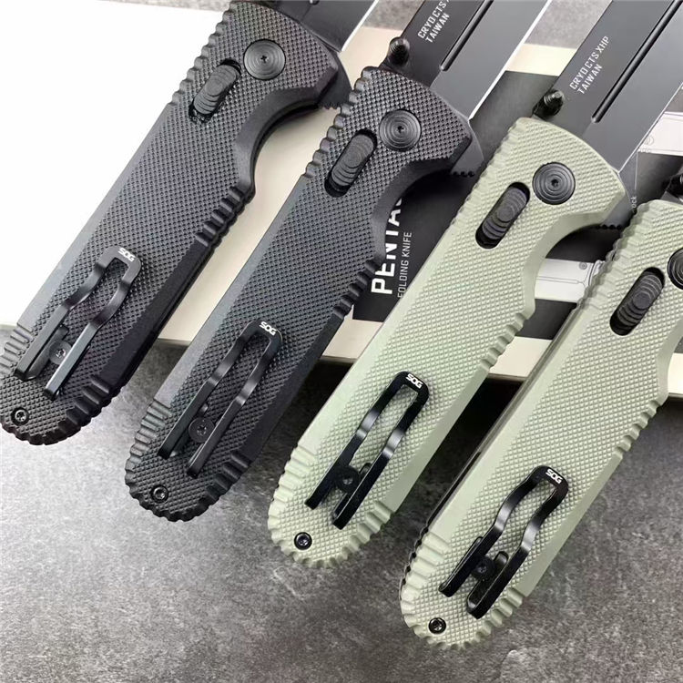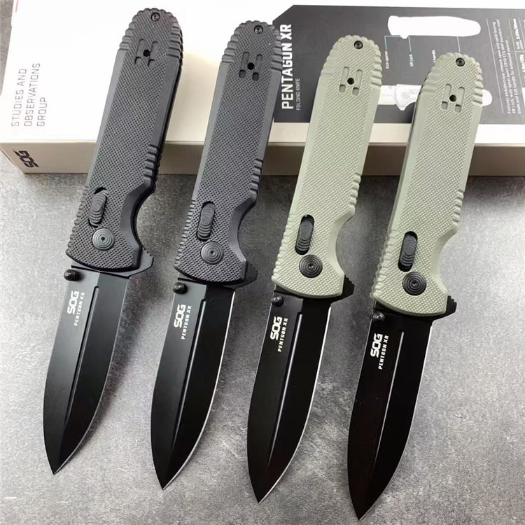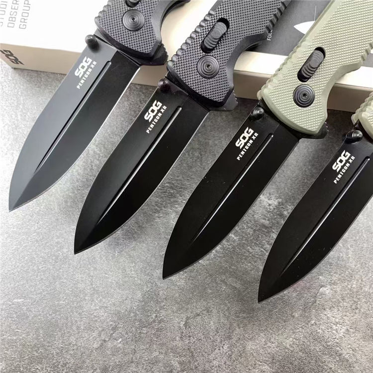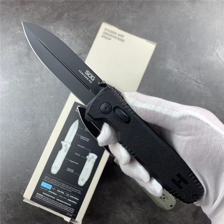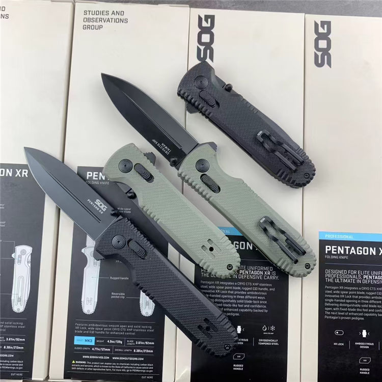 SOG索格XR五角大楼折刀 总长:21cm 刃长:8.9cm 柄长:12cm 刃宽:2.7cm 刃厚:3mm 刃材:CTS-XHP 柄材:玻璃钎维 重量:137g(裸刀)222g(含包装) 硬度:59-60HRC 工艺:Nitride氮化钛涂层 配置:原装彩盒