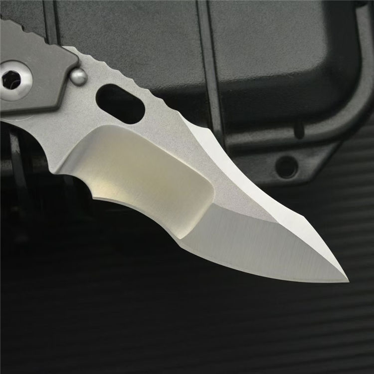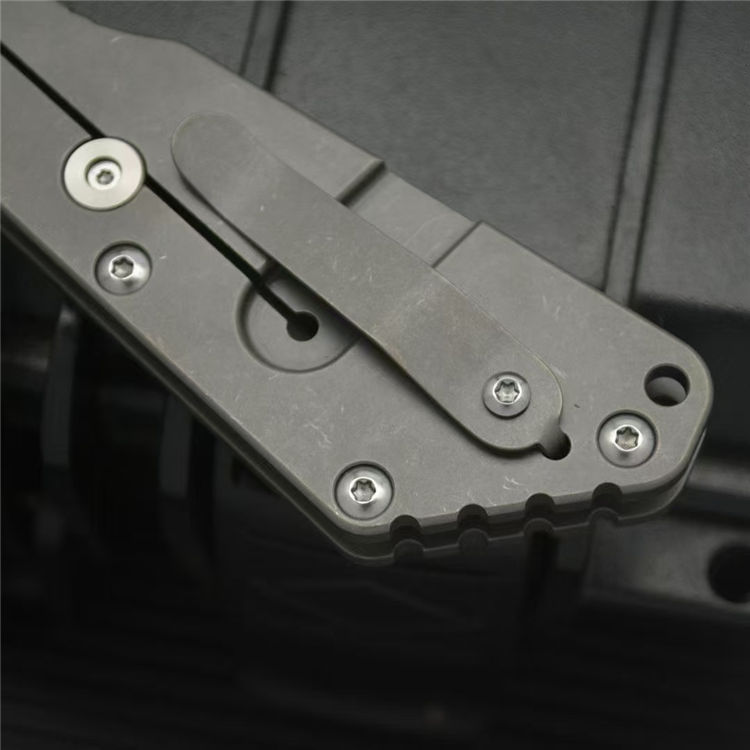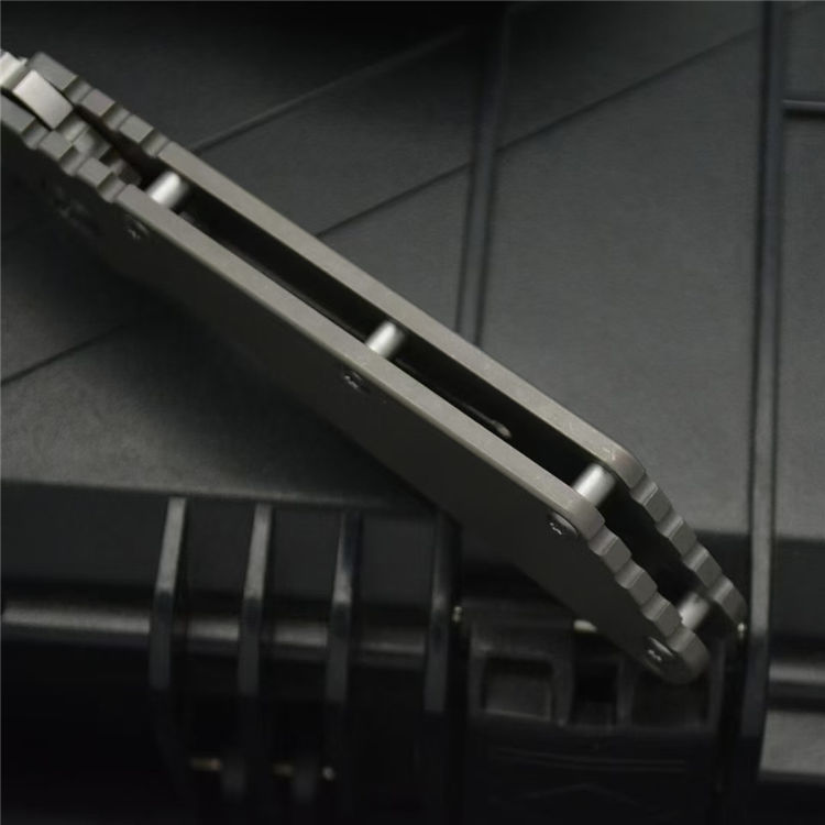 挺进者恶魔之眼钛合金折刀 全长:230cm 刃长:9.8cm 柄长:13.2cm 刃宽:3.6cm 刃厚:4.2mm 刃材:VG10(刀刃数控磨工处理) 刀重:200g 总重:243g (含包装物) 硬度:58-60HRC 表面:刀刃真空处理,石洗+精细沙光 柄材:正反面钛合金钢材,灰钛色钛柄 刀夹:钛合金背夹 锁型:线锁 螺丝:所有螺丝420不锈钢硬度HRC45,全CNC精雕加工 结构:线锁结构、锁刀接触镶嵌合金粒、陶瓷定位珠、内置平面滚针轴承垫片