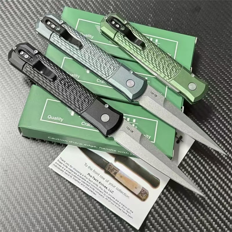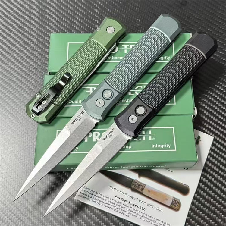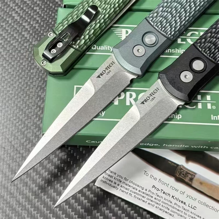 超技术924教父侧开跳刀 全长:235mm 刃长:10mm 刃材:154-CM 硬度:58HRC 刃厚:3.2mm 柄长:135mm 柄材:6061-T6.CNC加工 重量:108g 包装:彩盒包装
