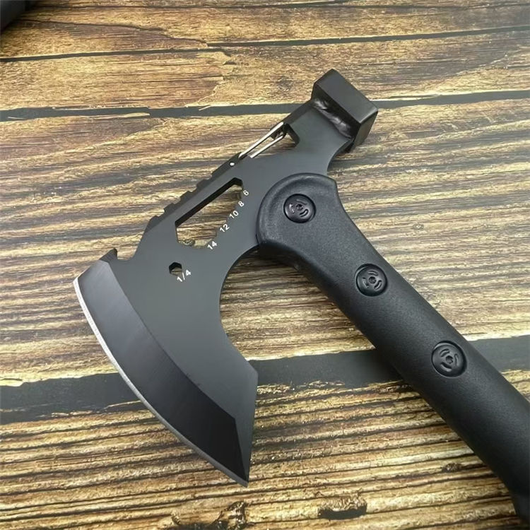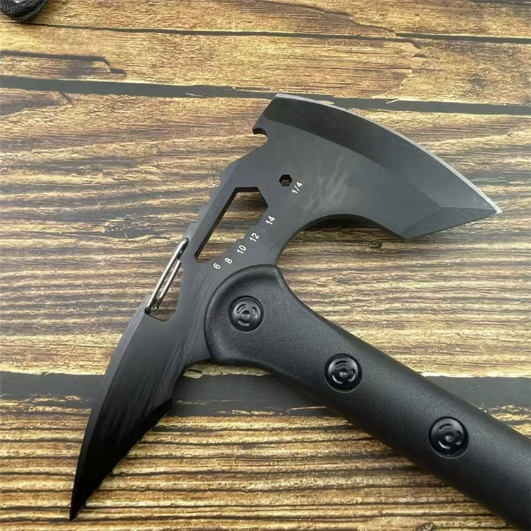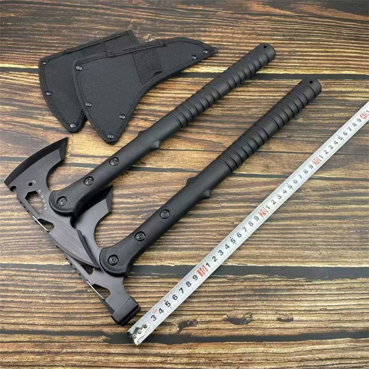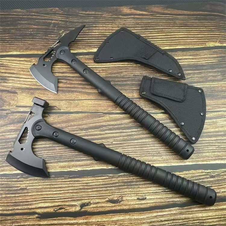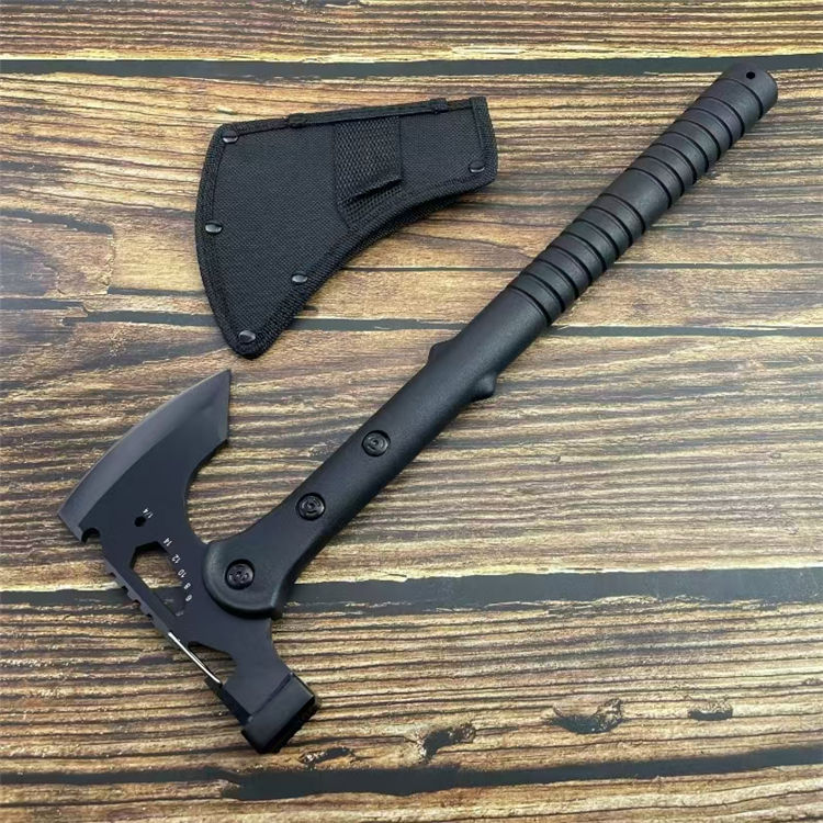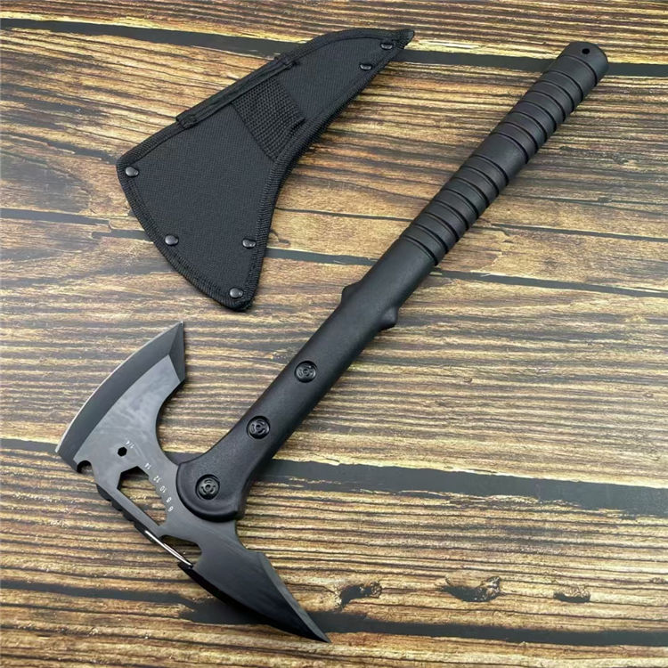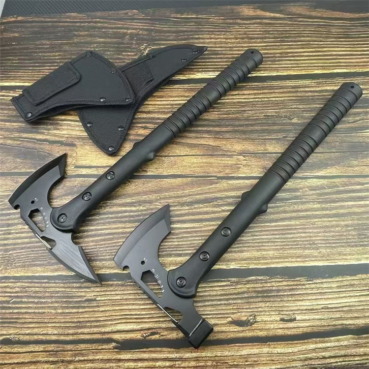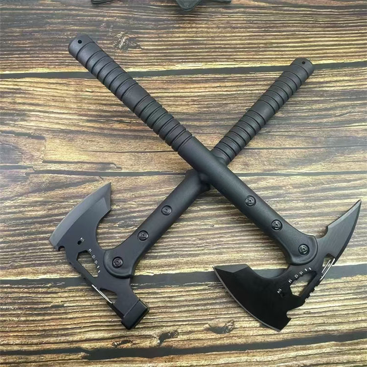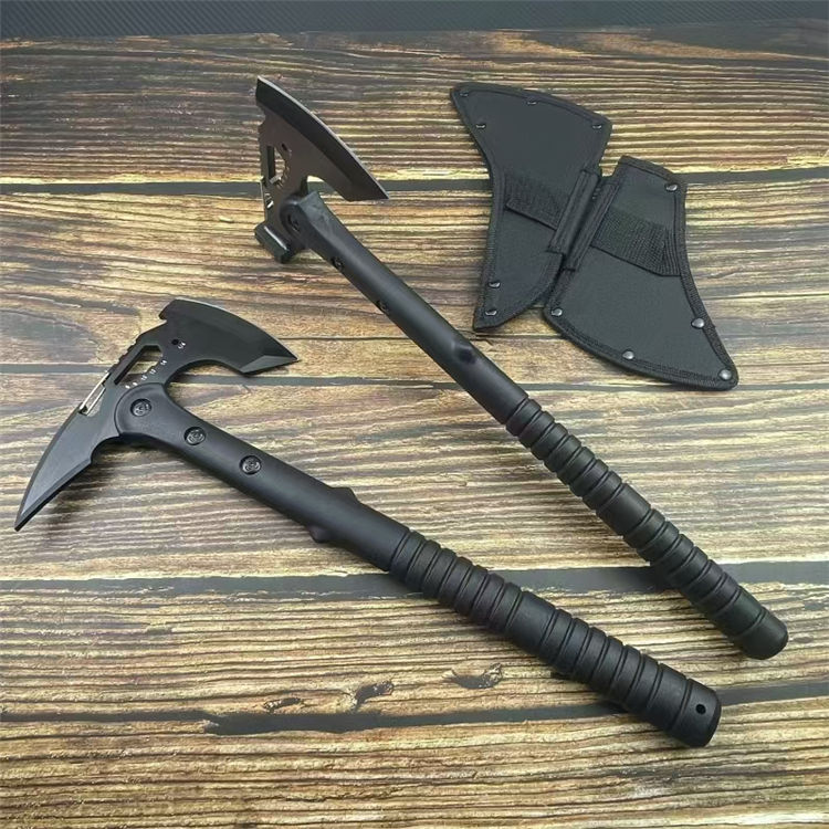 多功能战术斧 长度:38.5CM 柄材:高级工程ABS 斧材:高碳不锈钢 重量:520G/490G 功能:劈,锤,锥,扭