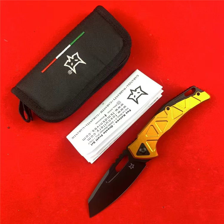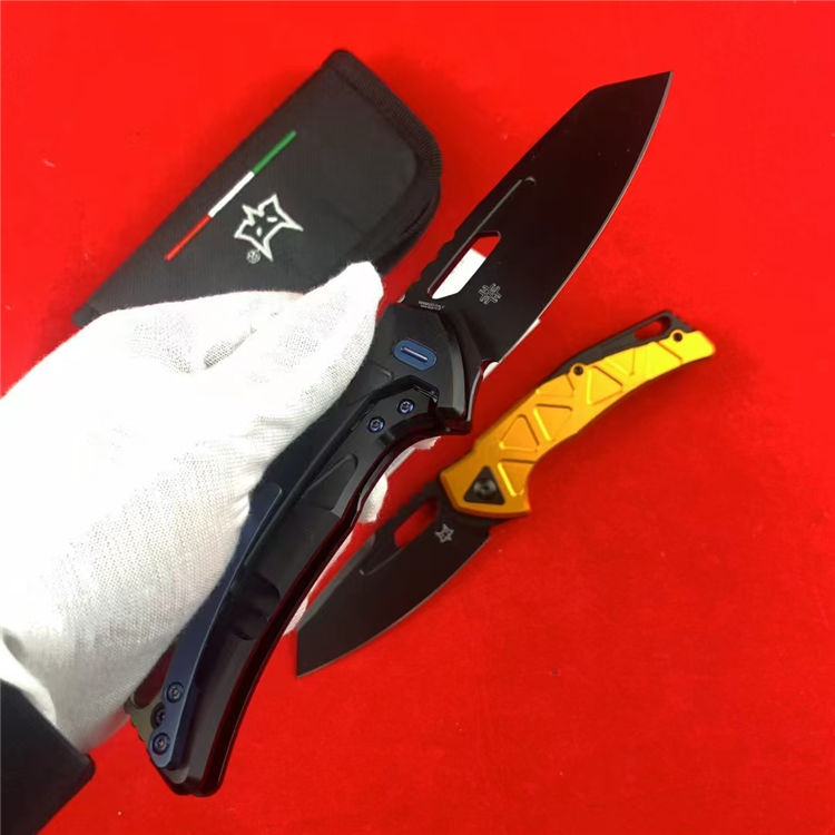 狐狸FX552ALBR折刀 全长:20cm 刃长:8.6cm 刃厚:4mm 柄长:11.4cm 刃宽:3.3cm 柄材:7071航空铝 硬度:62-64HRC 重量:123g 净重:196g(含包装) 工艺:涂层,黑钛,CNC电脑锣精密加工制作