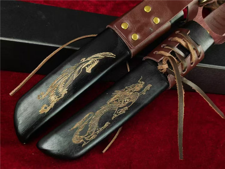 配套:印尼进口黑檀木,手工CNC电脑雕刻龙凤图腾木鞘