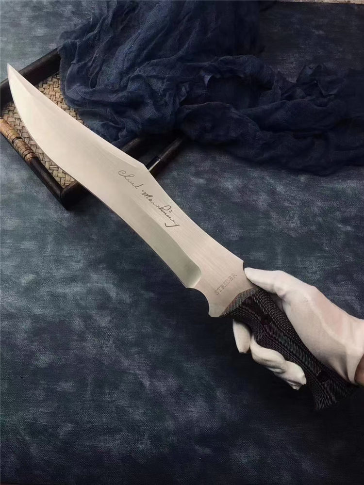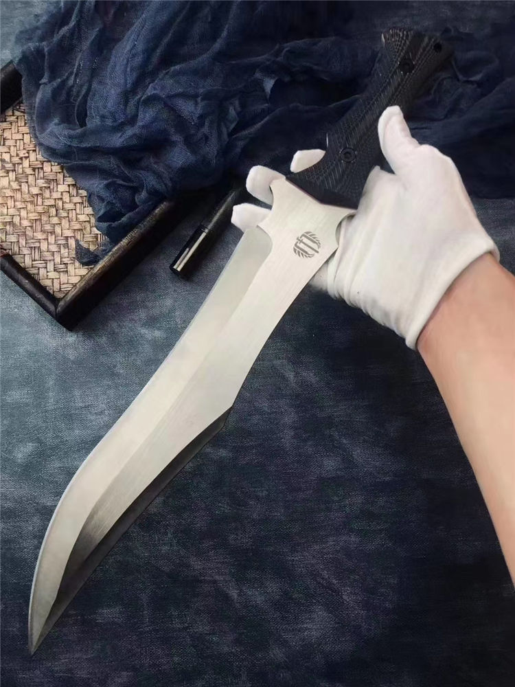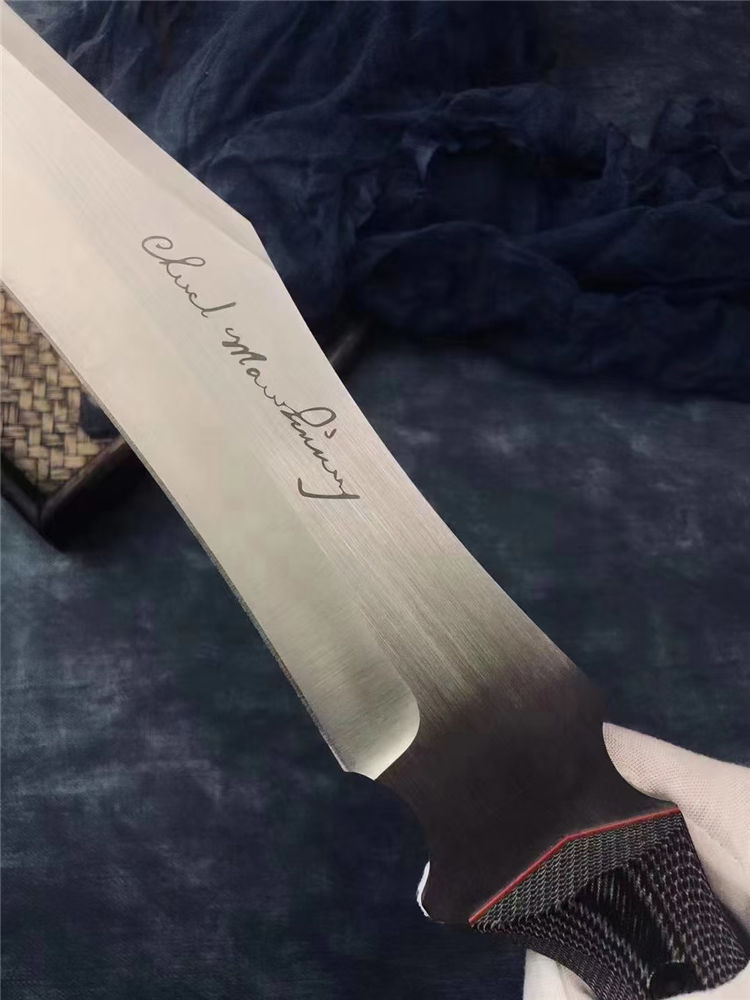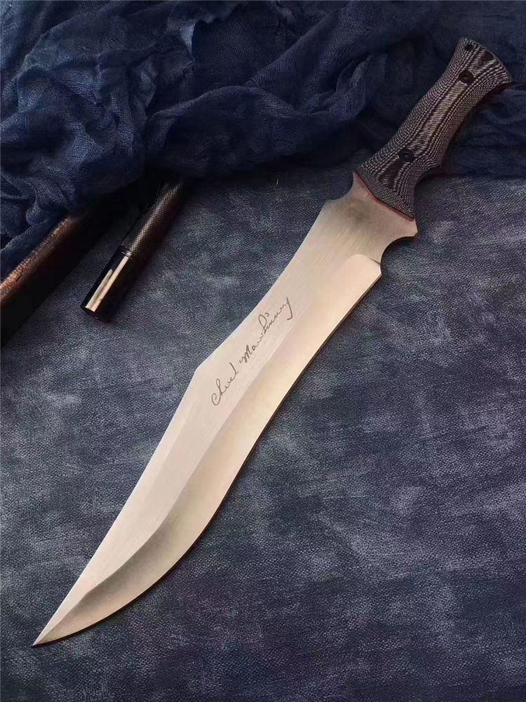全长:455mm 刃长:325mm 刃厚:6.1mm 刃宽: 58mm 刃材: 5Cr13 柄材: 米克塔 硬度: 56HRC 重量:1030g(含包装) 刀套:牛皮