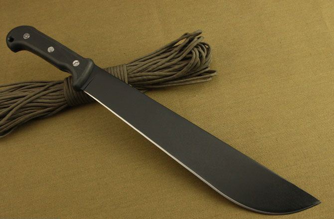 全长:48.6cm 刃长:34.5cm 柄长:14.2cm 刃厚:5.3mm 刃宽: 5.6cm 刃材: 5Cr13 柄材: ABS 硬度: 57HRC 毛重:800克(含包装物) 表面处理:氧化黑