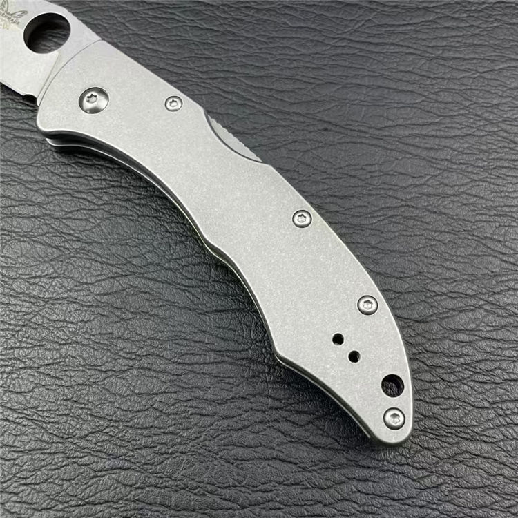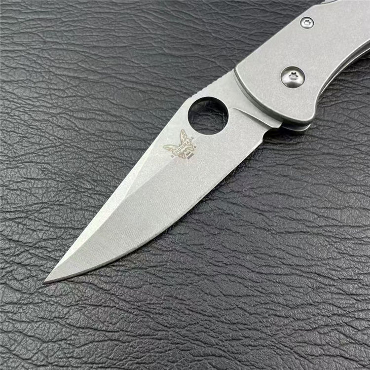 蝴蝶10402折刀 全长:19cm 刃长:7.3cm 柄长:11cm 刃宽:2.5cm 刃厚:3mm 刃材:M390 刀重:153G 毛量:215G 硬度:58-60HRC