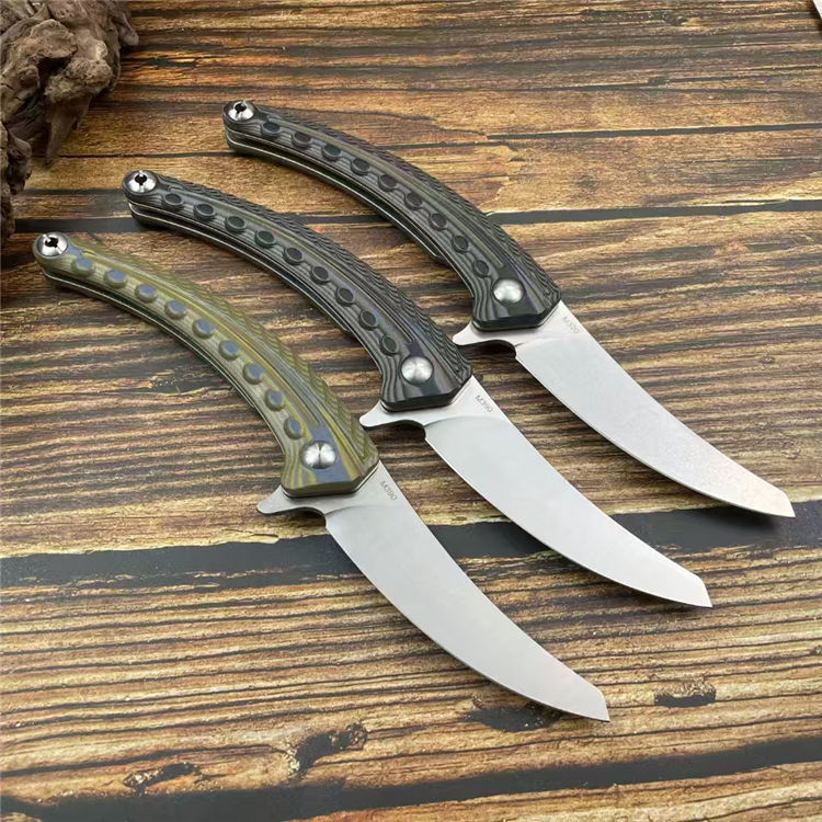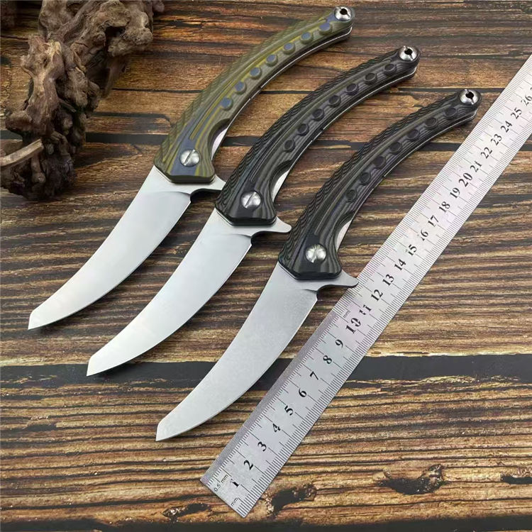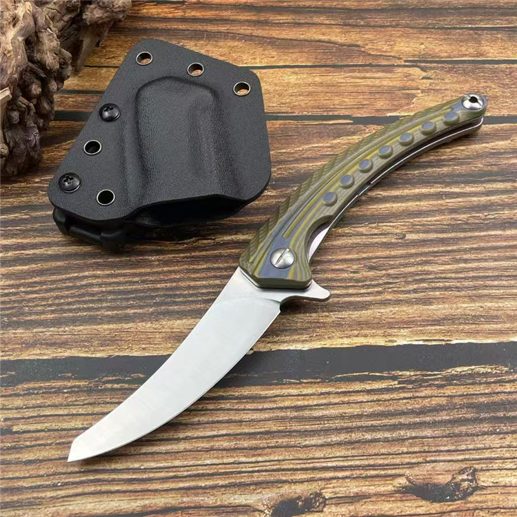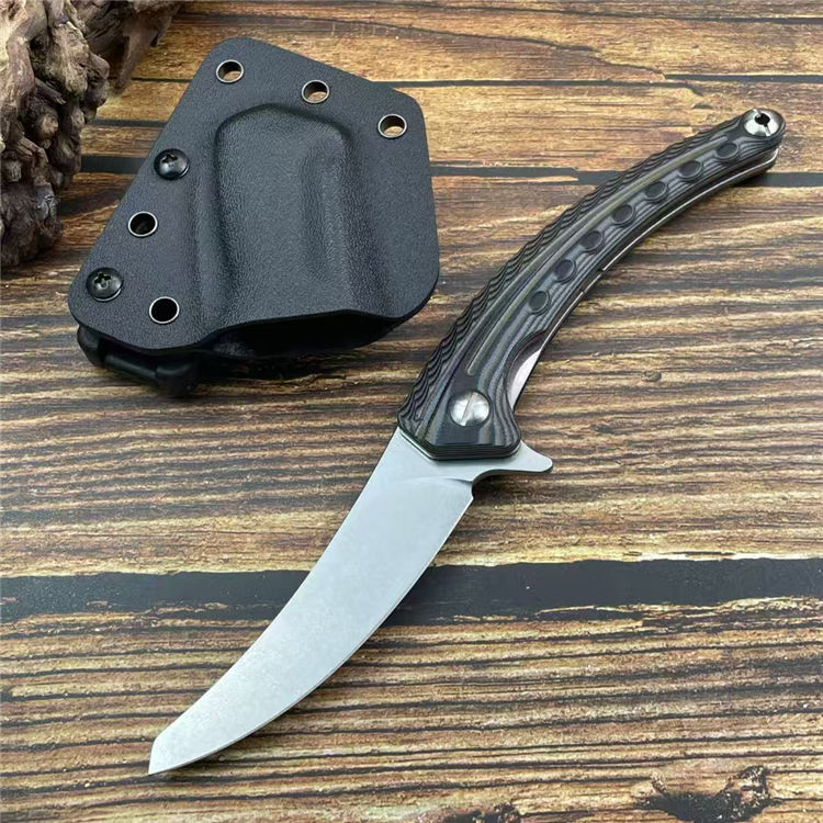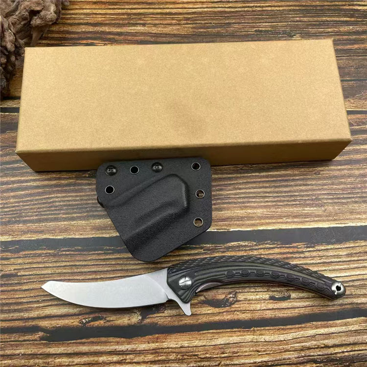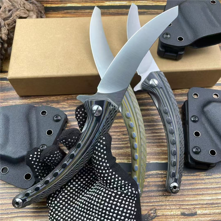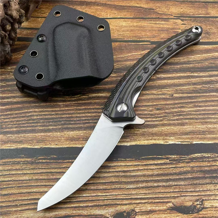 异形契约折刀 全长:24cm 刃长:10cm 柄长:14cm 刃宽:2.6cm 刃厚:3mm 刃材:M390 柄材:钢片+G10 净重:130g/200G(含梢) 毛量:353g 硬度:59-60HRC 包装:K梢+礼盒