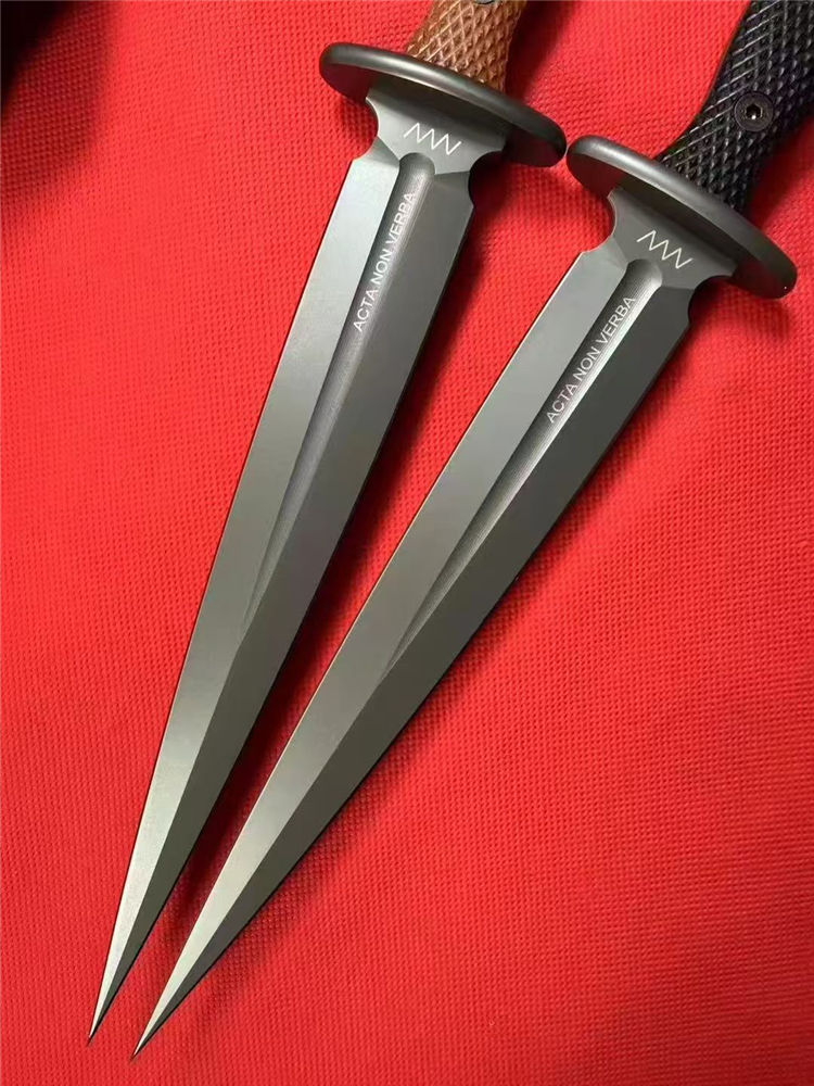 捷克ANVM500ELMax直刀 全长:34.2cm 刃长:20.9cm 柄长:13.3cm 表面:镀钛 刃厚:0.4cm 刃宽:2.8cm 刃材:DC53磨具钢 硬度:60HRC 柄材:棕色亚麻 刀套:美版2.0K鞘 重量:刀248g+鞘112g=360g 其他:黑色硬装盒子