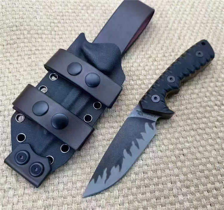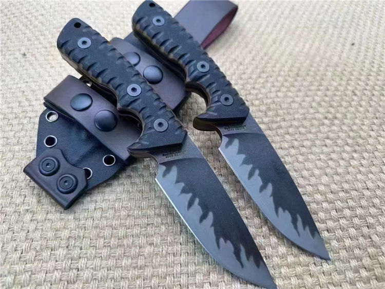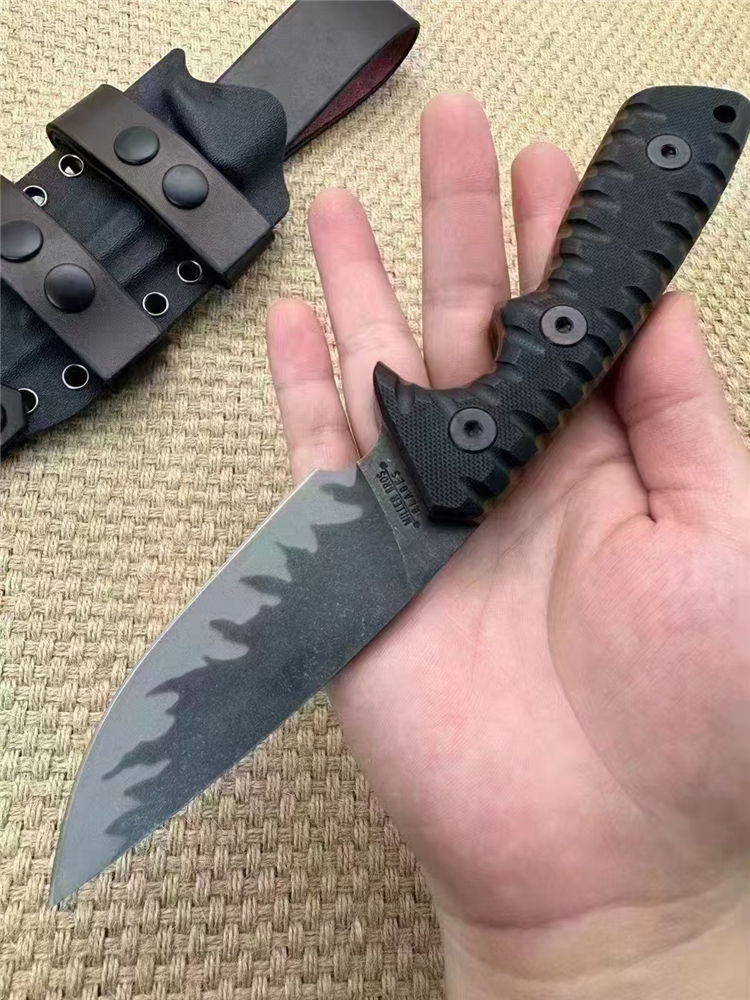 米勒迷彩特别版M27直刀 全长:23cm 刃长:10.5cm 刃宽:3.5cm 钢材:进口A8钢 硬度:60-62HRC,专业真空深冷油淬热处理 表面:石洗迷彩工艺 重量:292.G单刀,含鞘445G 柄材:双色G10,沙漠色+黑色 刀鞘:加厚型进口K鞘+意大利进口植鞣皮手工制作 风格:战术强悍型,高端品质 包装:手工盒子包装