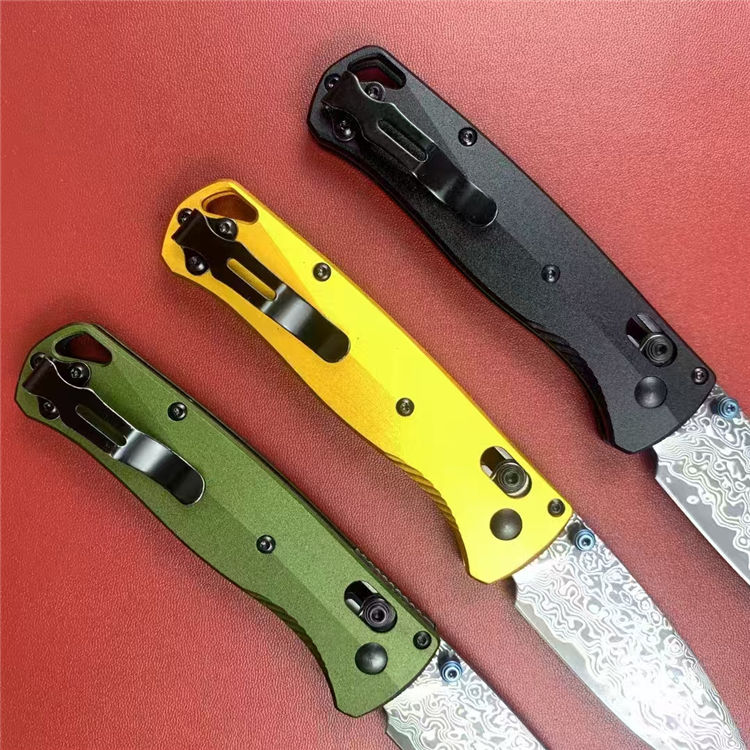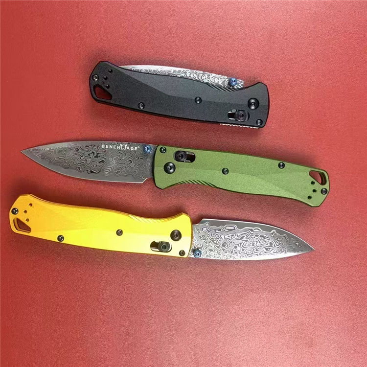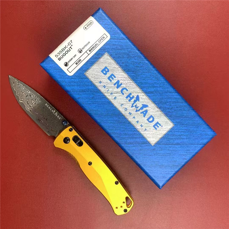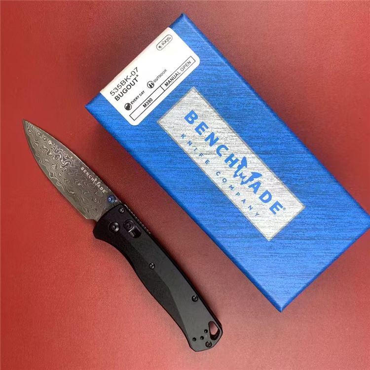 大马士革蝴蝶535BK-07折刀 总长:19cm 刃长:8cm 柄长:10.8cm 刃宽:2.5cm 刃厚:2mm 刃材:大马士革 柄材:铝合金 硬度:58-59HRC 重量:143g(含包装) 配置:彩盒 工艺:CNC电脑锣精密加工制作