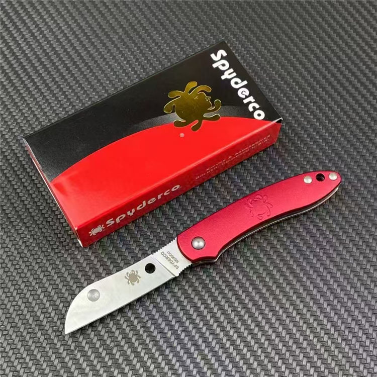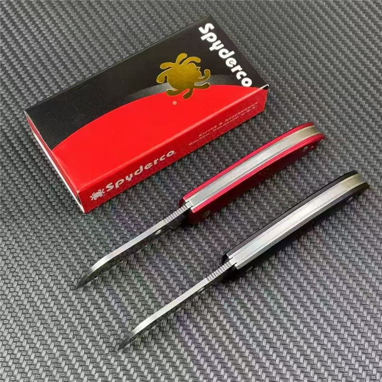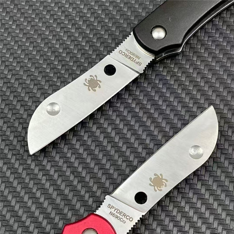 蜘蛛弹力底骨折刀 全长:13.5cm 刃长:5cm 柄长:1.3cm 刃宽:1.3cm 刃厚:3mm 刃材:N690CO 净重:55.5g 毛量:75g 硬度:59-60HRC 柄材:铝+钢