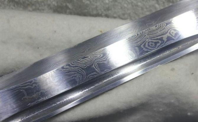 全长:45 cm 刃长:27 cm 柄长:15 cm 刃宽:3.5 cm 刃材:百炼花纹钢研磨 装材:铜配件,黑檀手柄 硬度区间:60HRC 性能:全开锋,削纸断竹砍铁 备注:手工产品存在误差,规格仅供参考,请以实物为准!