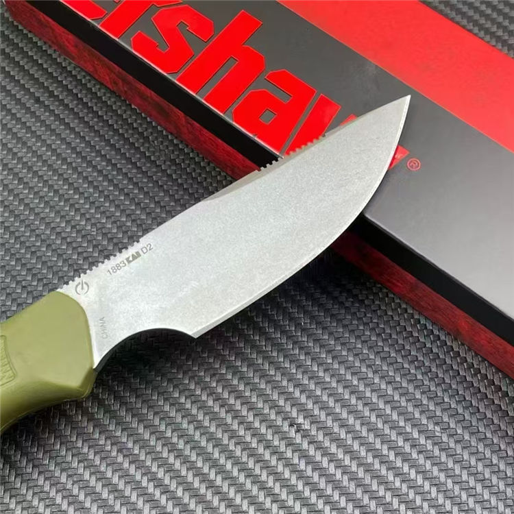 卡秀1833直刀 全长:22cm 刃宽:2.8cm 刃长:12cm 刃厚:3.2mm 刃材:D2钢 柄材:聚丙烯橡胶 刀重:116G/170G(含K鞘) 毛量:192G 硬度:58-60HRC 包装:彩盒