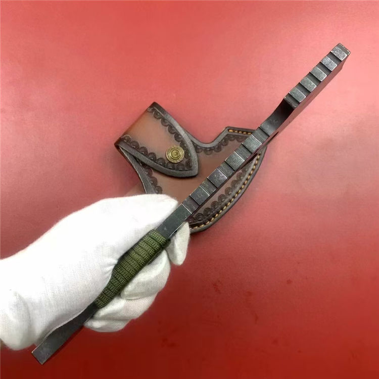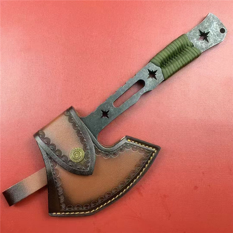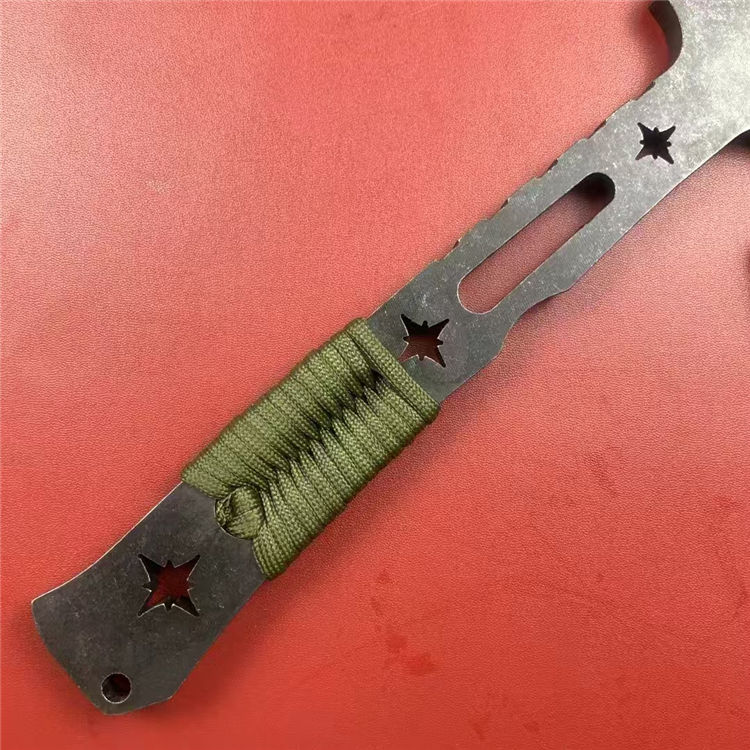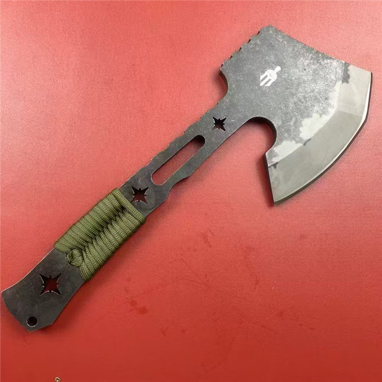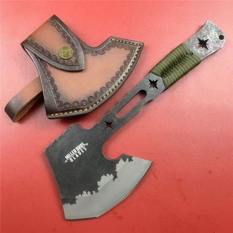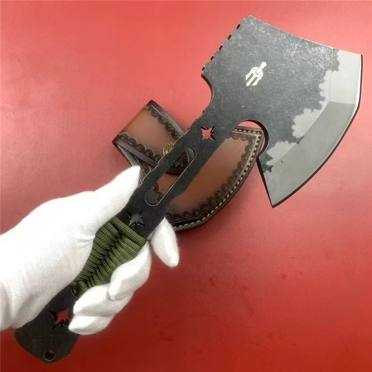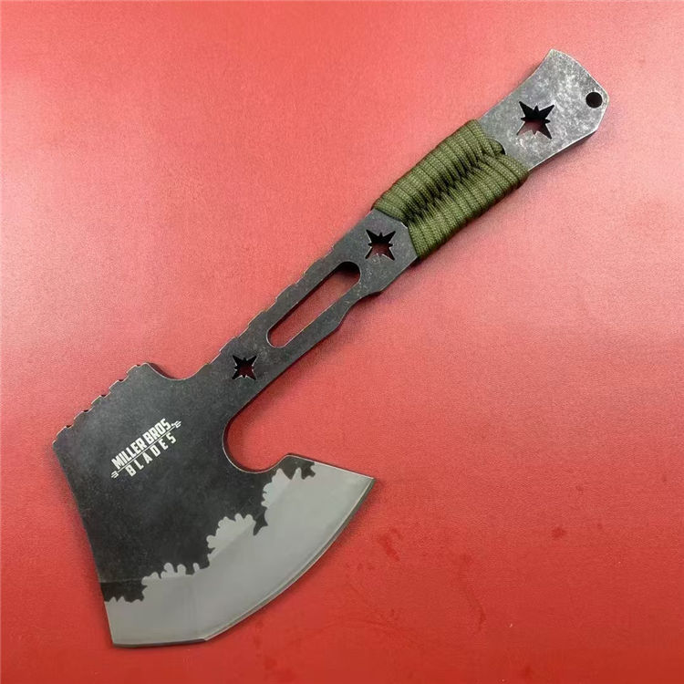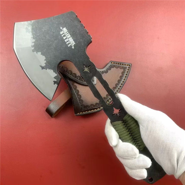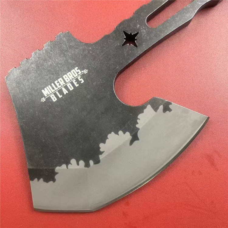米勒战斧 总长:31cm 刃长:12cm 柄长:19cm 刃厚:1cm 刃材:DC53 硬度:58-60HRC 重量:940g(含皮套) 配置:皮套