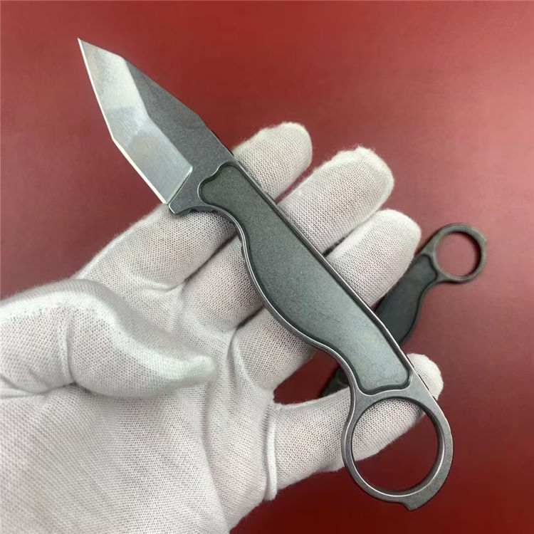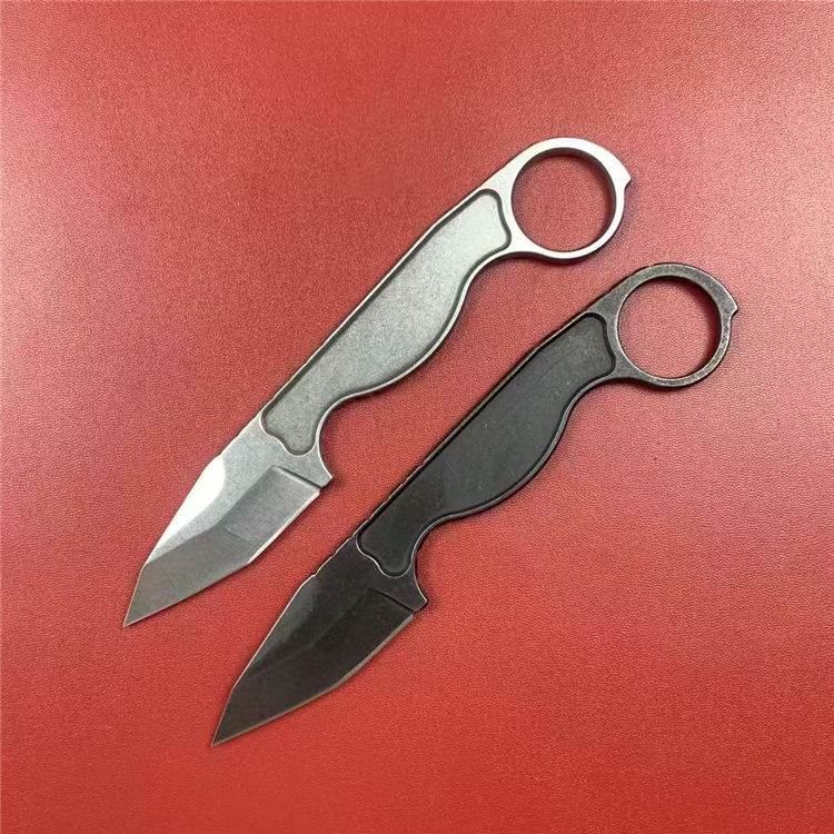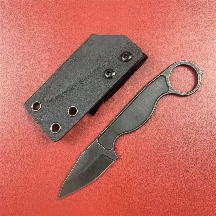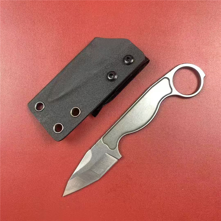 工具战术手刺刀 总长:16.5cm 刃长:5.7cm 刃宽:2.5cm 刃厚:4mm 刃材:8cR13Mvo 硬度:59-60HRC 重量:88g(含鞘) 工艺:石洗,CNC电脑锣精密加工制作