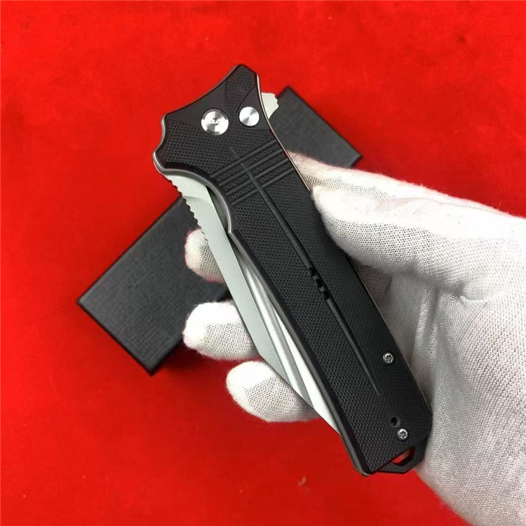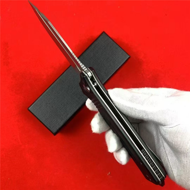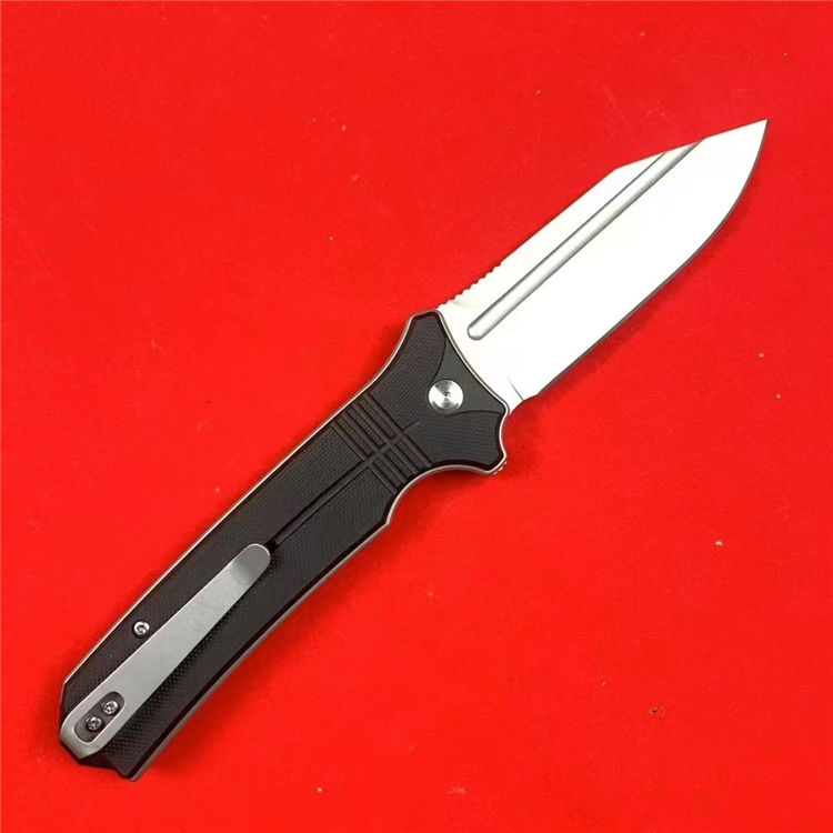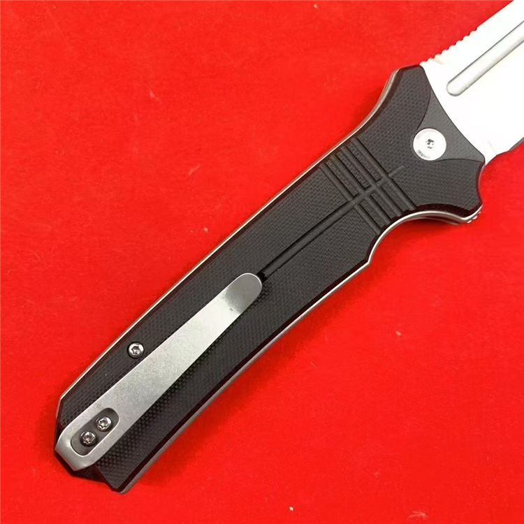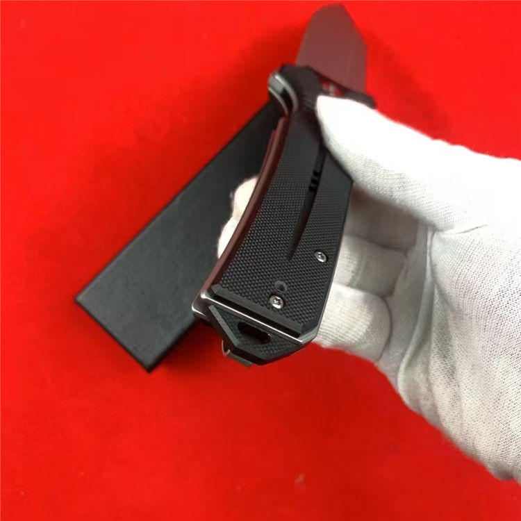 托德折刀 总长:22.6cm 刃长:9.3cm 柄长:13.3cm 刃宽:3.1cm 刃厚:3mm 刃材:D2 柄材:G10 硬度:59-61HRC 重量:197g(含包装) 工艺:喷砂,CNC电脑锣精密加工制作