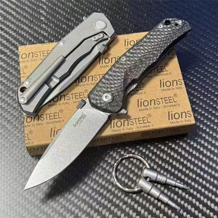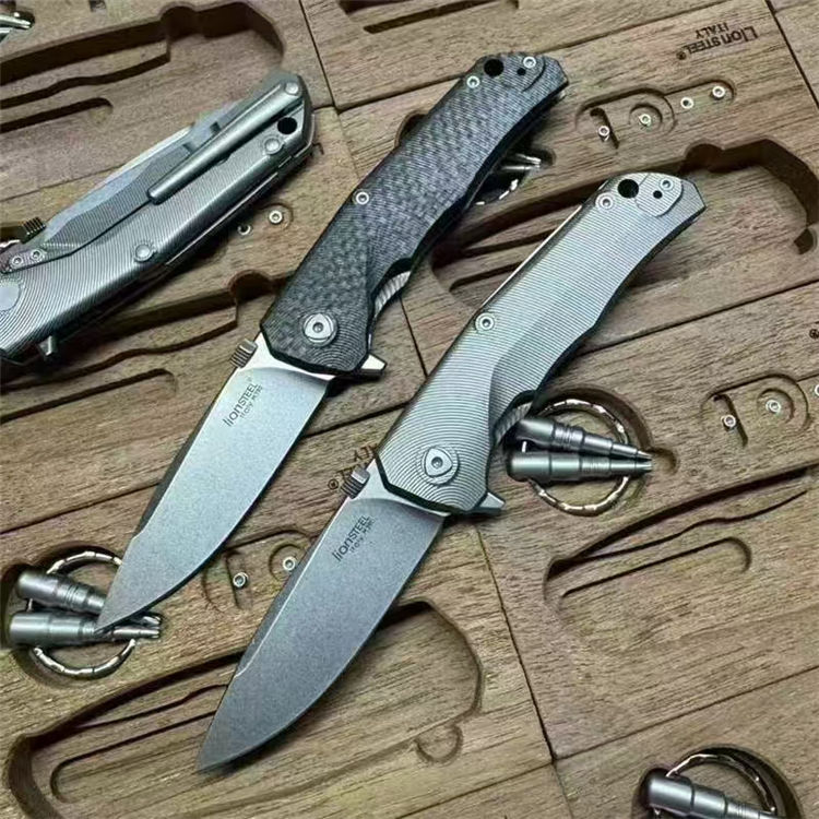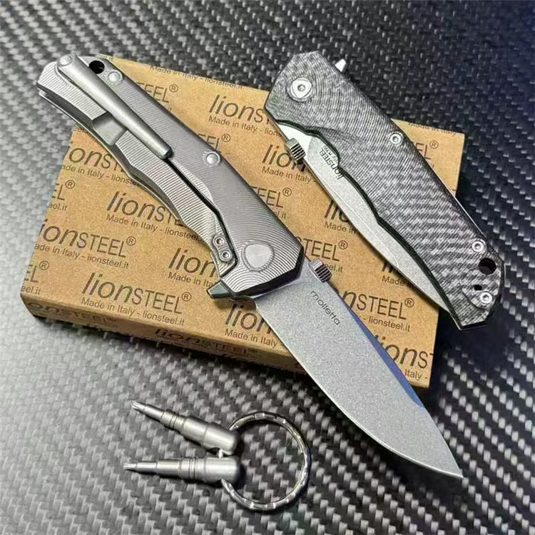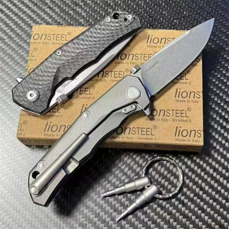 钢狮钛合金折刀 总长:173mm 刃长:75mm 刃厚:3.4mm 刃材:M390 刃面:石洗 手柄:10mm 柄材:钛合金/碳纤维+钛合金 系统:陶瓷轴承 硬度:60HRC 重量:150克 包装:木盒+配T6,T8拆卸工具