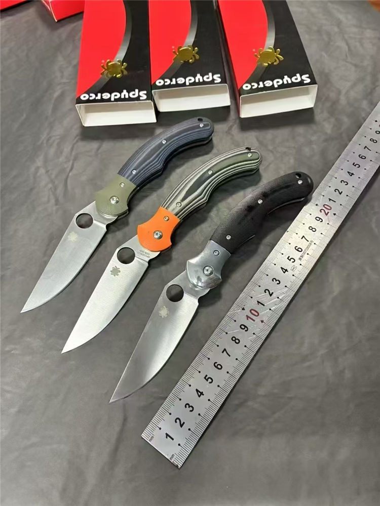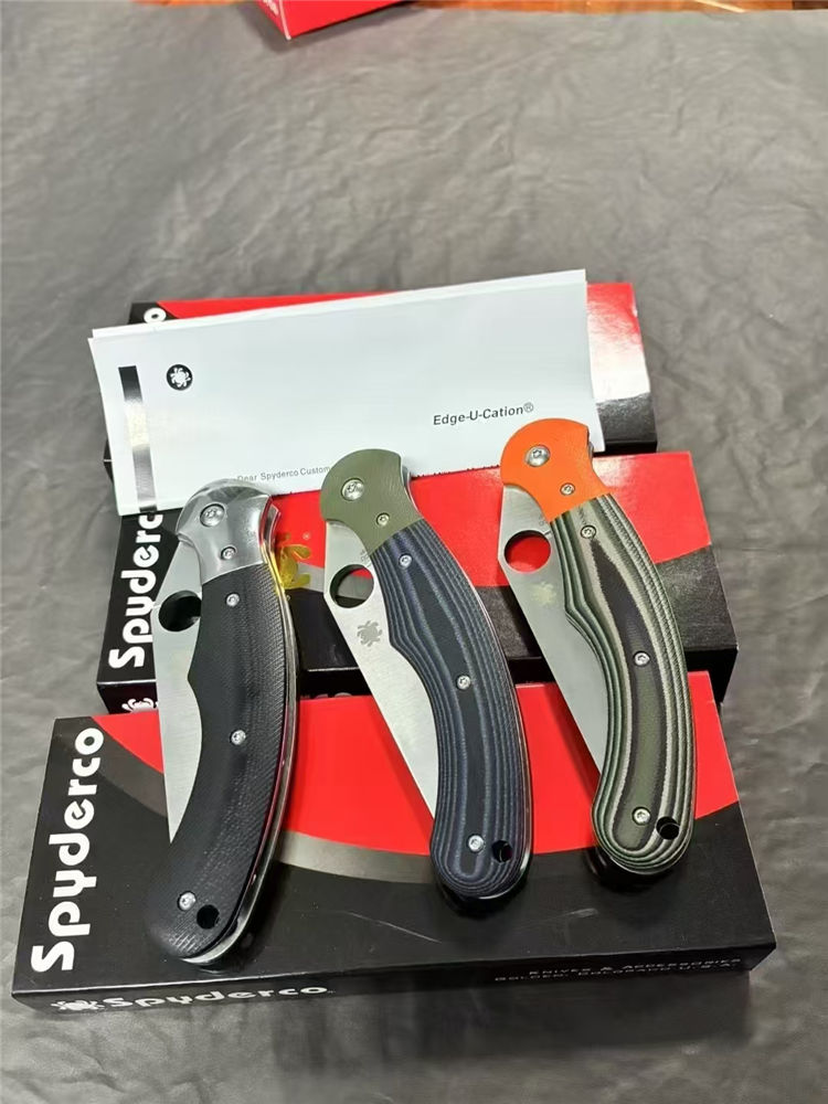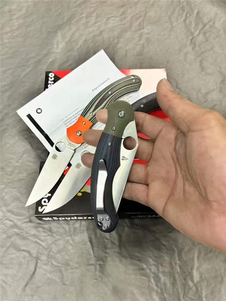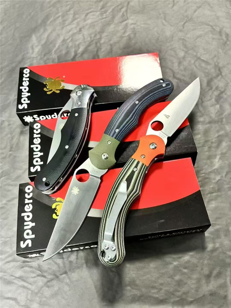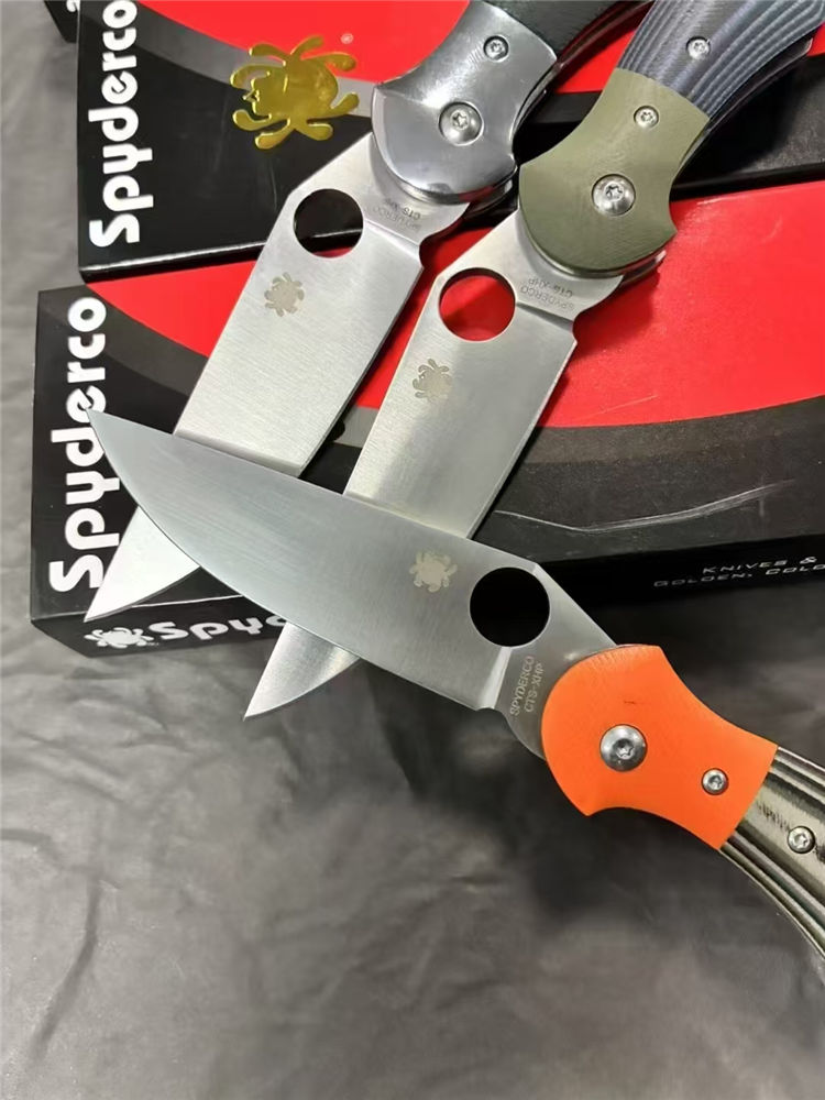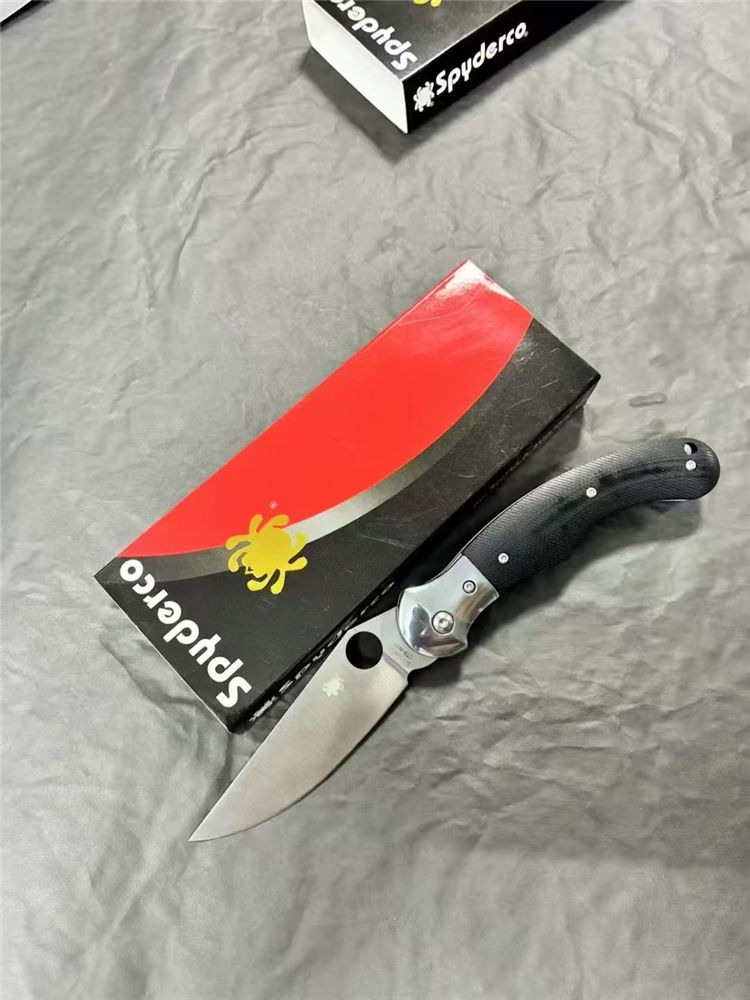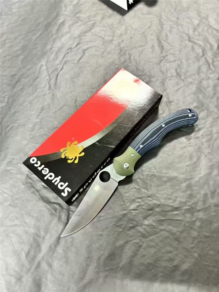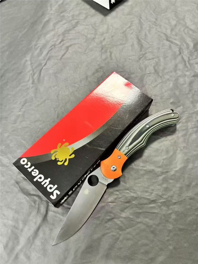 蜘蛛C173-GTC折刀 全长:214mm 刃长:85mm 柄长:122mm 刃宽:28mm 刃厚:3.0mm 刃材:9CR19MOV 重量:140包装 硬度:58HRC 表面:砂光 柄材:镜光钢头+G10柄 其他:配彩盒+证书