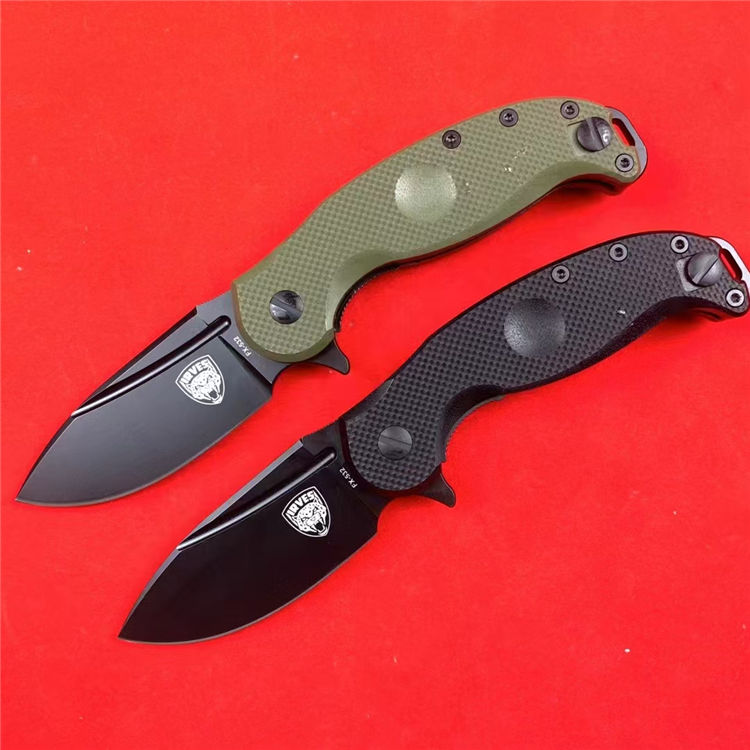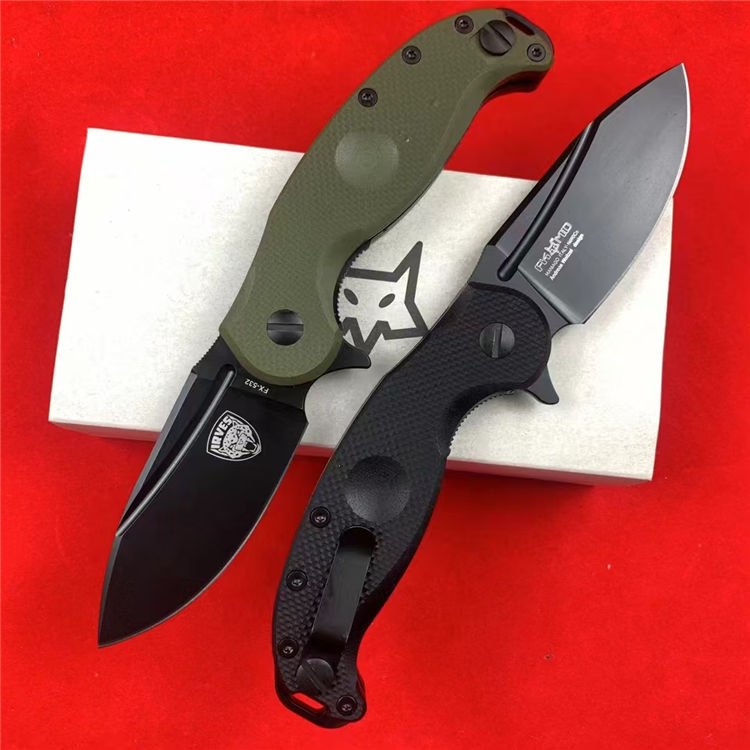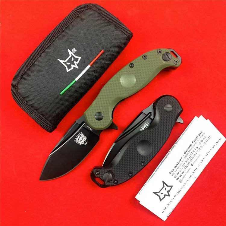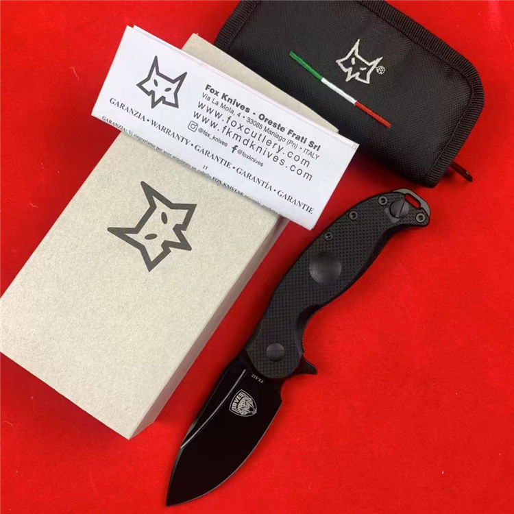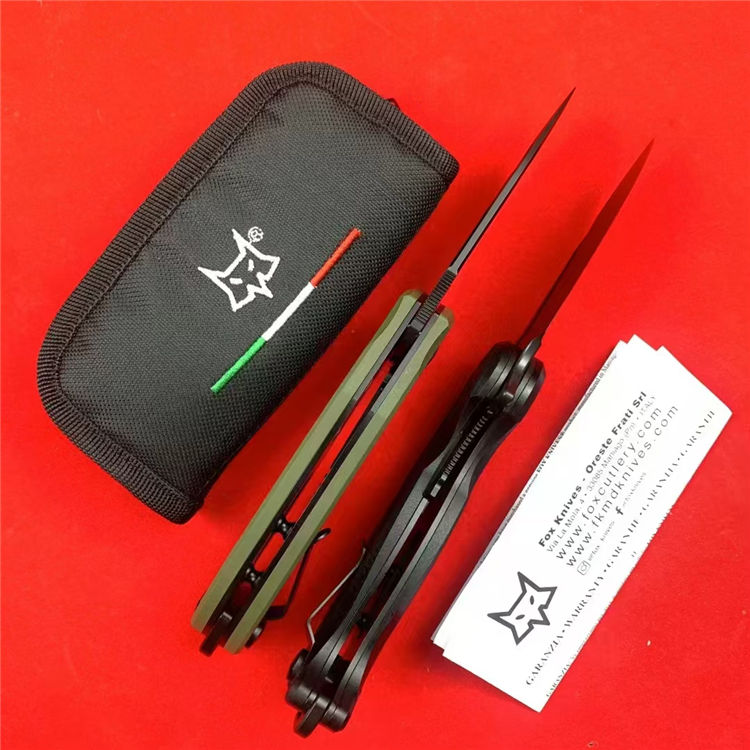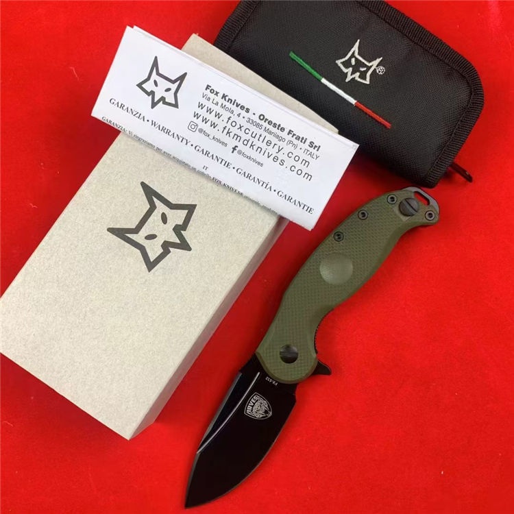 意大利狐狸伊夫斯战术折刀 总长:22cm 刃长:8.6cm 柄长:13.5cm 刃宽:3.9cm 刃厚:4mm 刃材:N690 柄材:G10 硬度:59-61HRC 重量:233g(裸刀) 工艺:发黑,CNC电脑锣精密加工制作