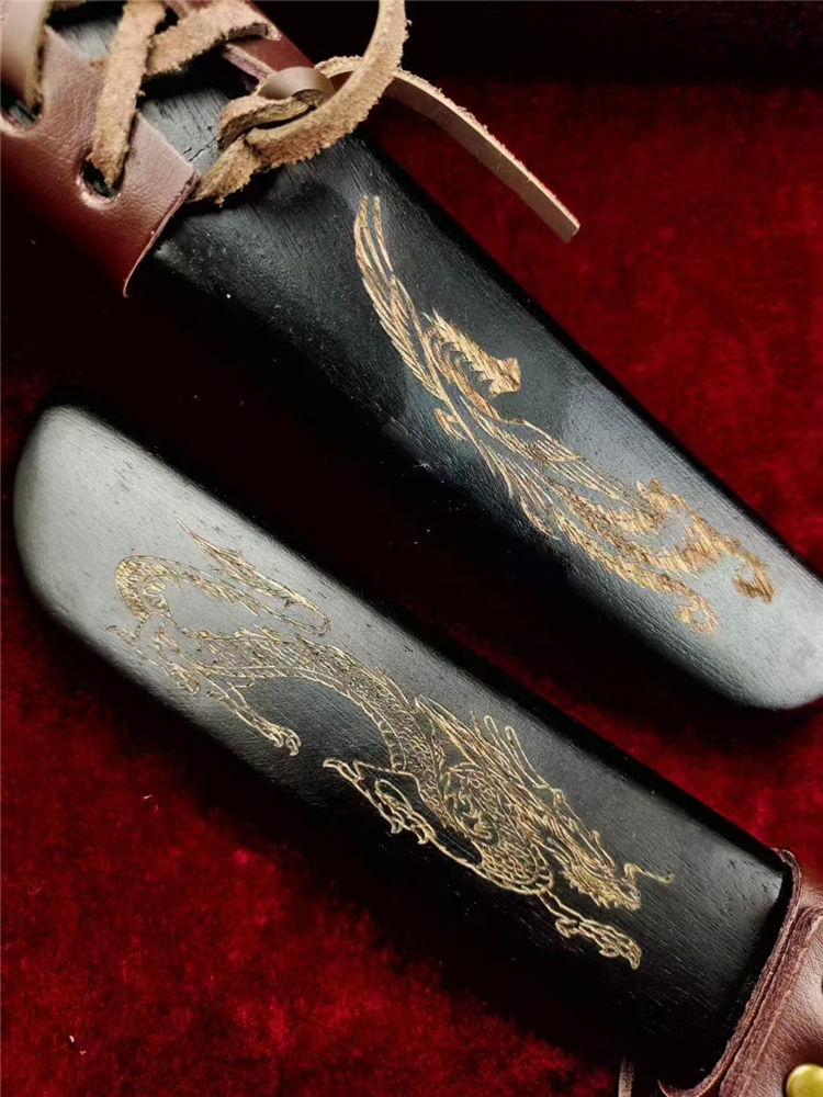 配套:印尼进口黑檀木,手工CNC电脑雕刻龙凤图腾木鞘