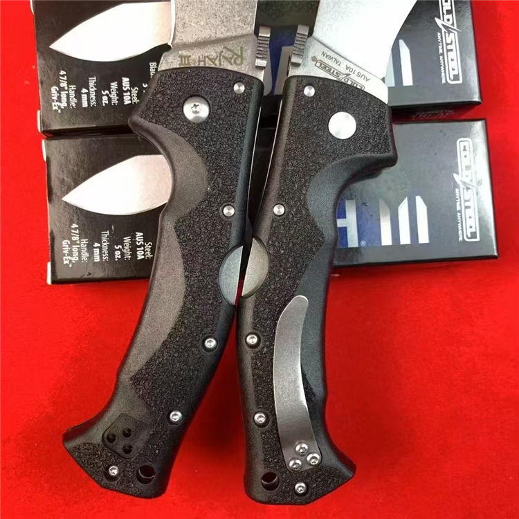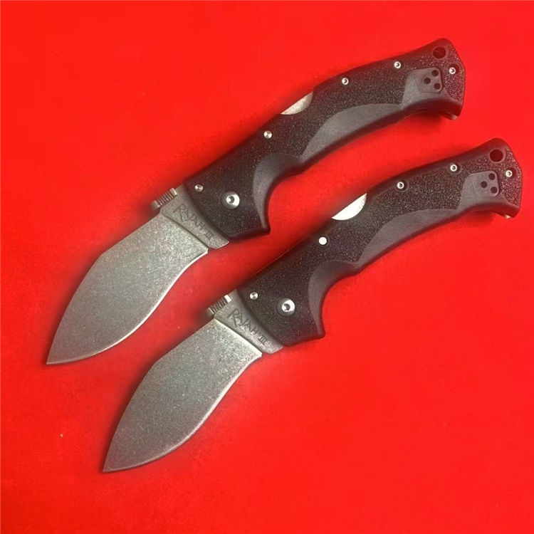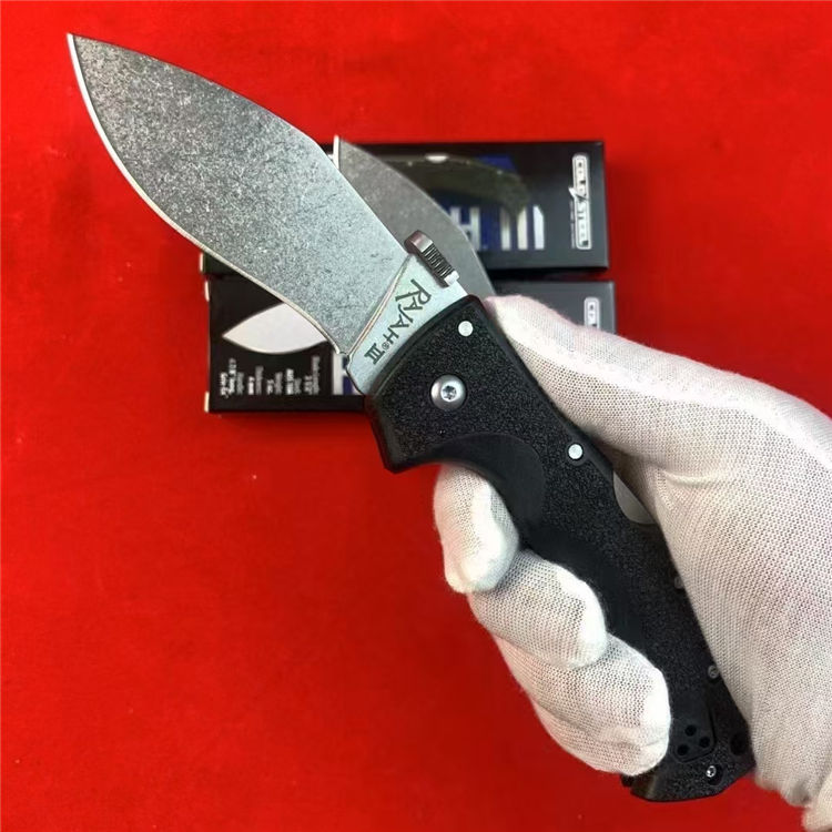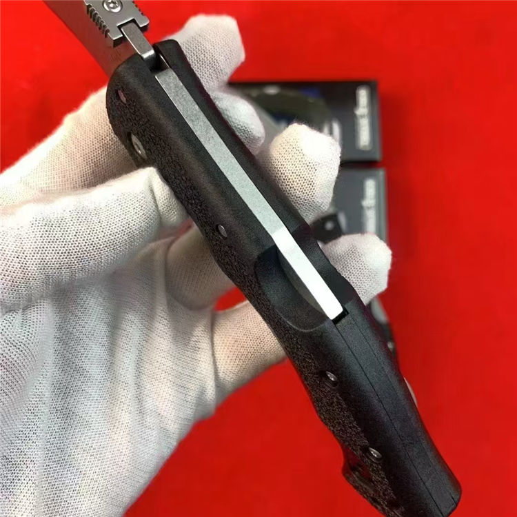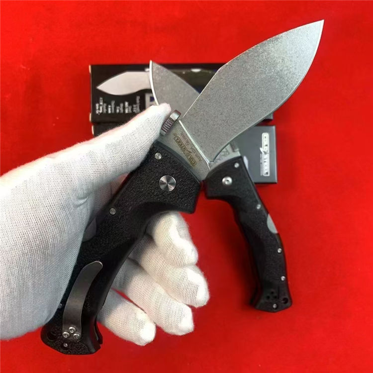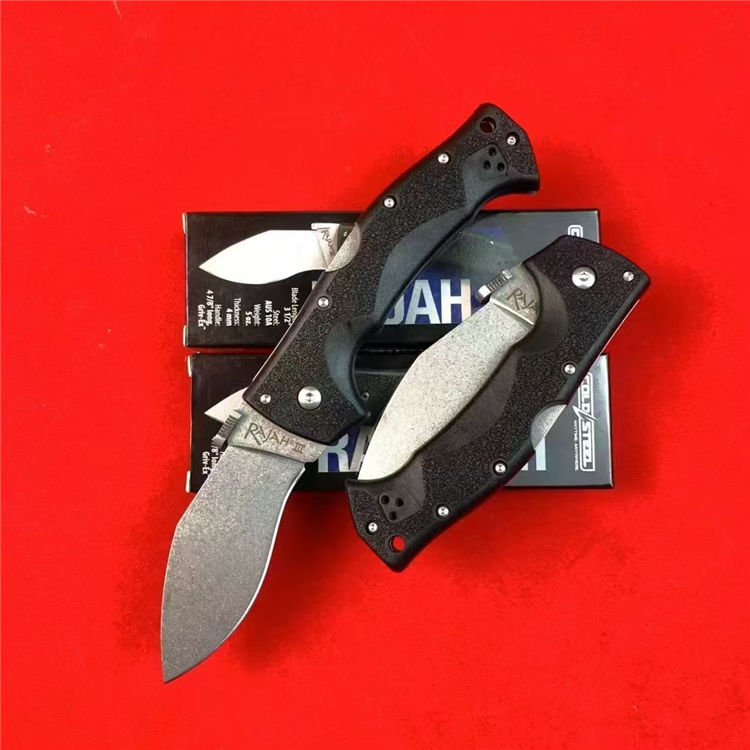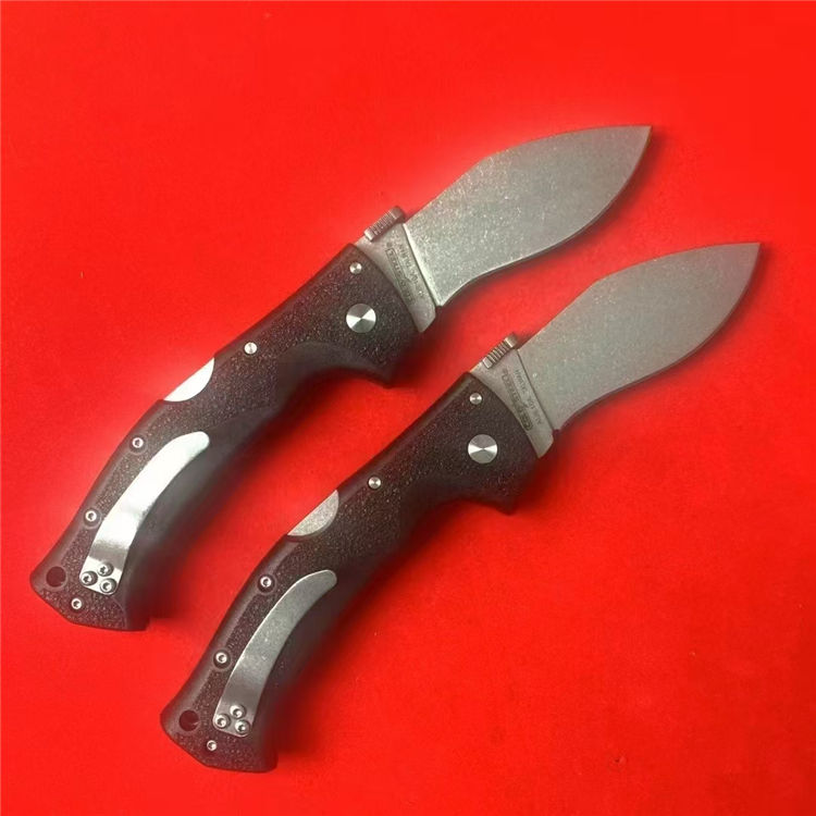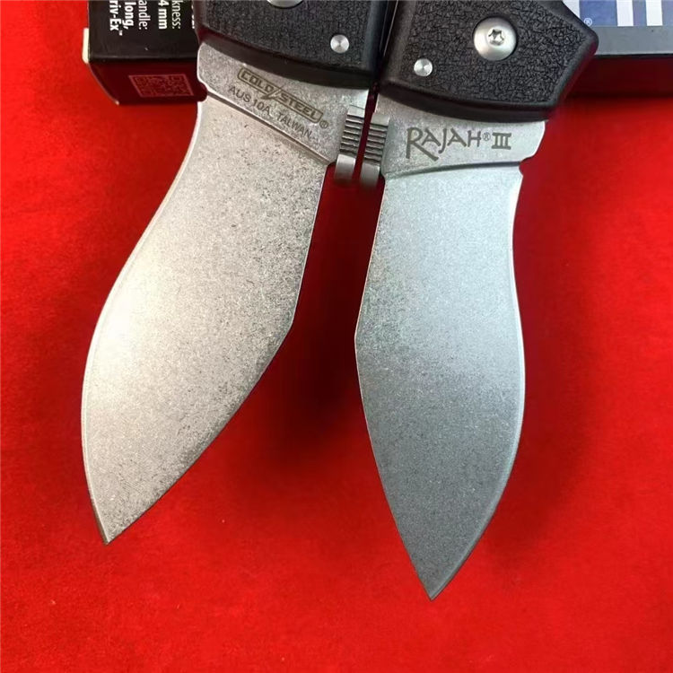 冷钢62JM折刀 总长:21cm 刃长:8.8cm 柄长:12.2cm 刃宽:3.2cm 刃厚:3mm 刃材:AUS10A 柄材:尼龙玻钎 硬度:57-59HRC 重量:183g(含包装) 工艺:石洗