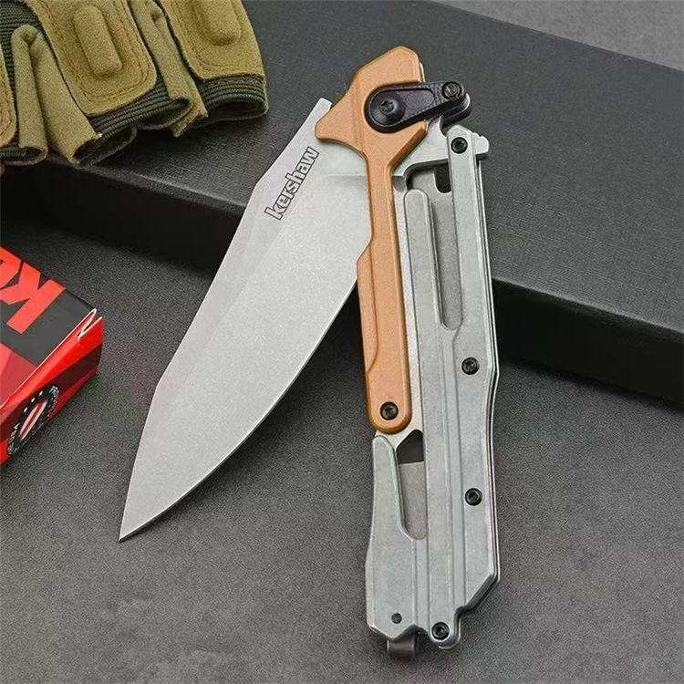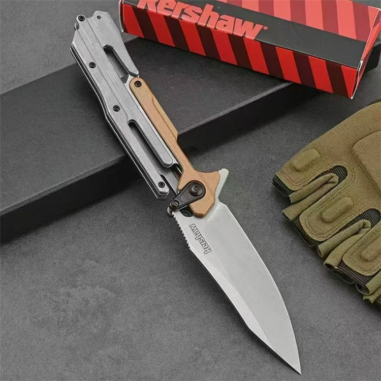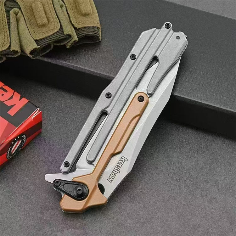 卡秀2039L折刀 全长:24cm 刃长:10.2cm 柄长:14cm 刃宽:3.2m 刃厚:3.5mm 刃材:D2 柄材:钢柄 刀重:204g 毛量:228g含包装 硬度:58-60HRC
