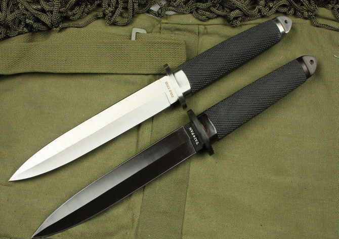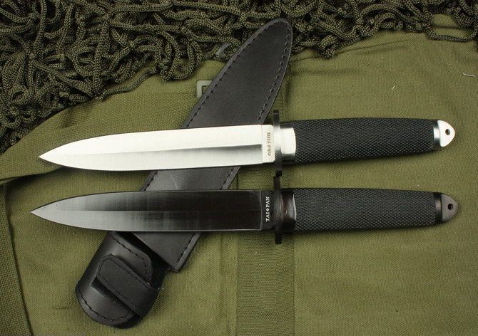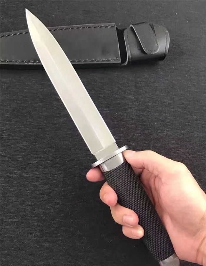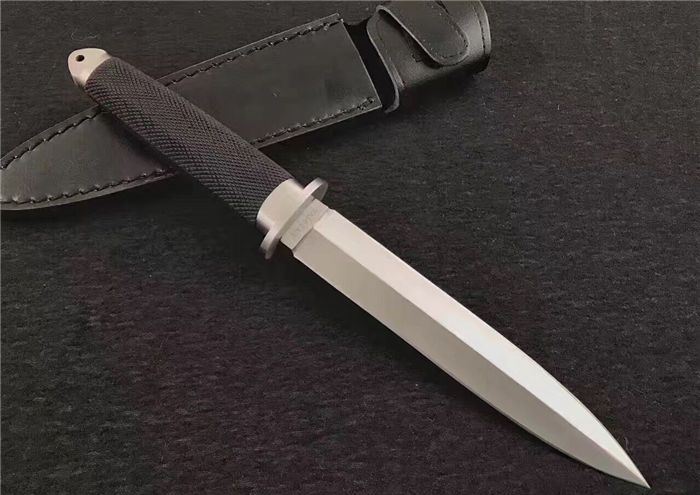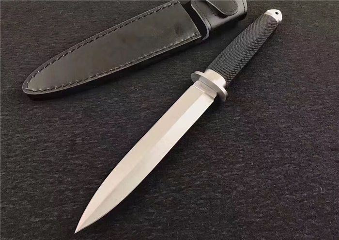 冷钢13D(双色) 全 长: 33cm 刃 长: 19.5cm 刃 厚: 4.3mm 刃 材: 440HC 硬 度: 58HRC 柄 材: 橡塑 刀 鞘: 牛皮