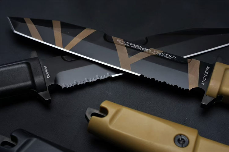意大利极端武力支点直刀 全长:310mm 刃长:176mm 刃材:N690 硬度:58HRC 表面:mil-c-13924打磨刀片黑色涂层 刃厚:6mm 柄材:NYLON 重量:302g 产地:意大利 附件:原厂战术尼龙鞘