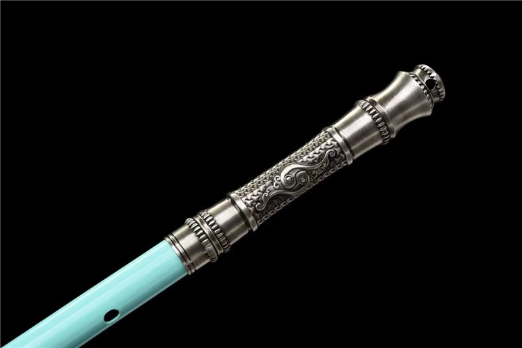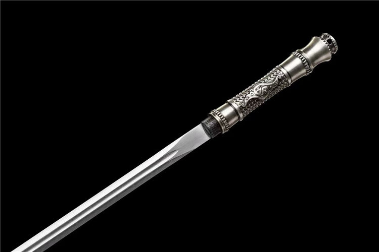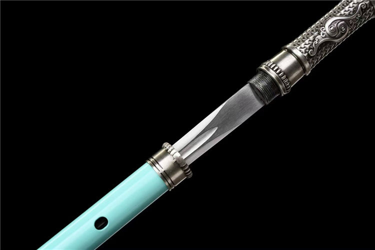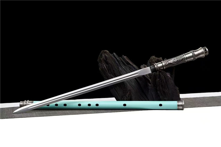 决云掍剑 全长:78cm 刃长:50cm 柄长:22cm 刃宽:2.6cm(最宽处) 反接:123cm 刃厚:0.5cm 刃材:极限锰钢现代工艺 鞘材:204不锈钢 重量约:1.15KG