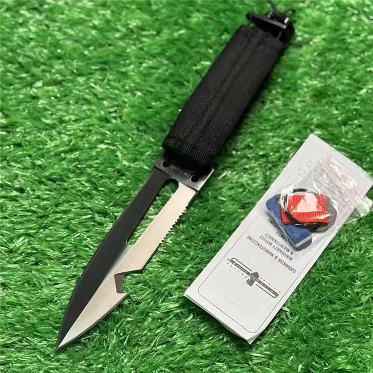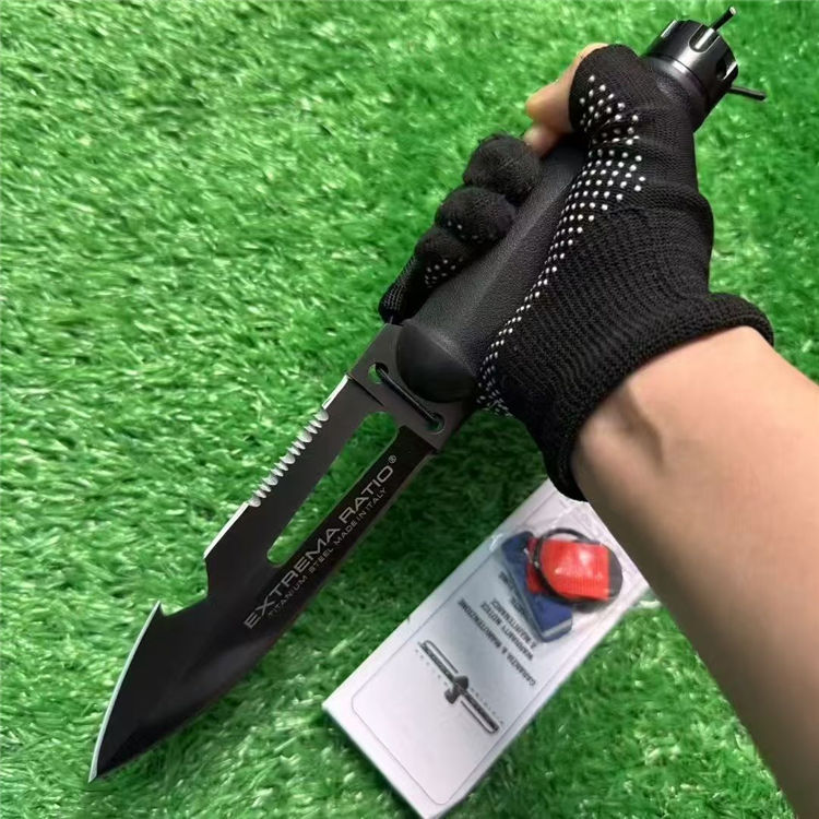 很多的陆地刀具一样,这把刀刀片质量非常沉重,可以高效率的砍伐树枝和灌木,帮助搭建避难场所,伪装掩体,担架等工作刀具上拥有的锯齿可以方便切割绳索,刀柄末端可以完美的充当击锤或玻璃击破器,而靠近手柄的刀片锋利部分可用于水下作业的精密切割。