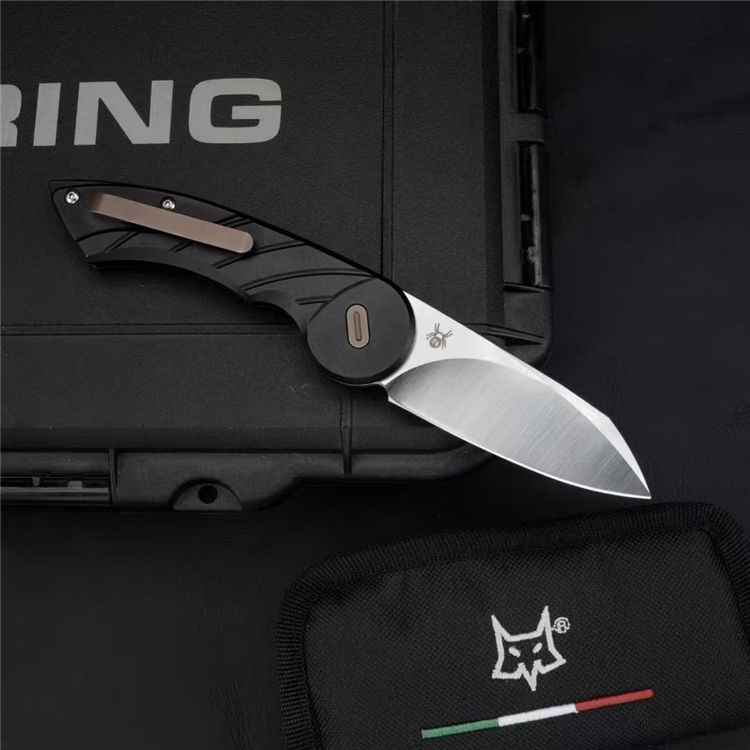 意大利狐狸雷迪斯折刀 全长:18.5cm 刃长:7.2cm 刃厚:0.38cm 手柄:6061航空铝 钢材:M390 硬度:61HRC 重量:110.8克(裸刀) 刃面:锻面效果 工艺:CNC精密加工 附件:尼龙收纳刀包 包装:原厂包装+证书
