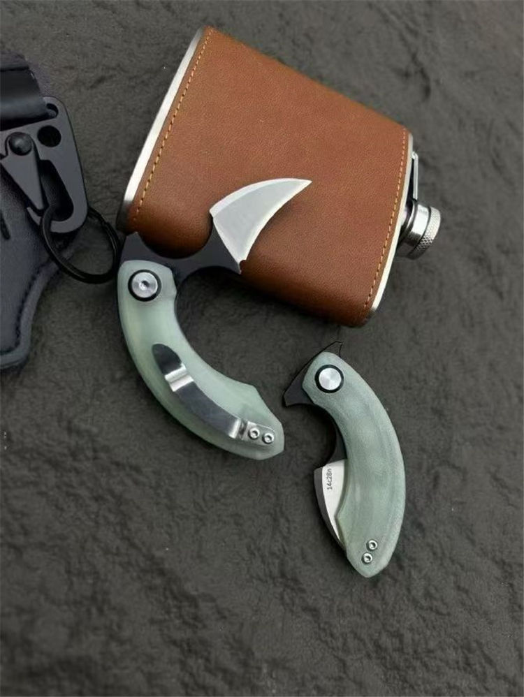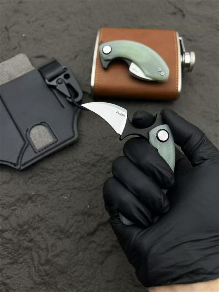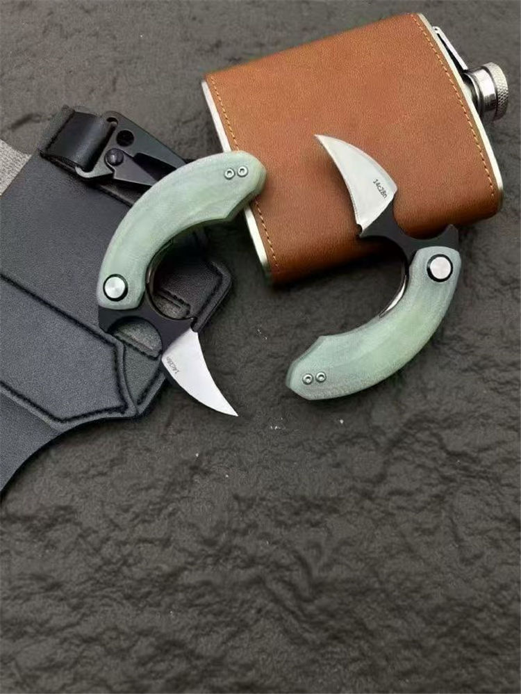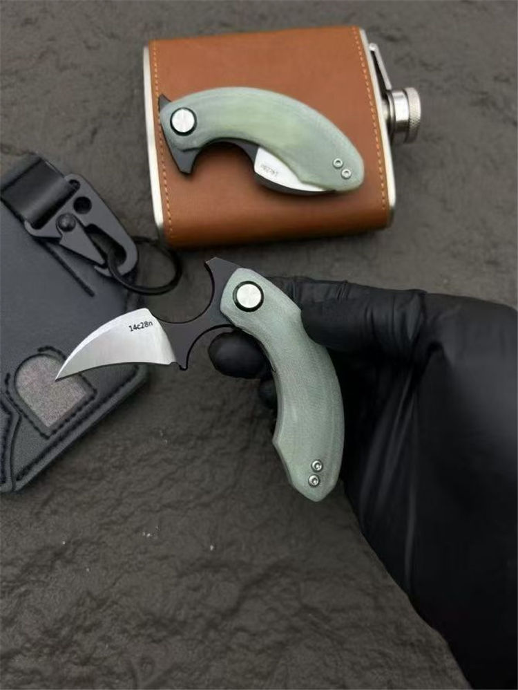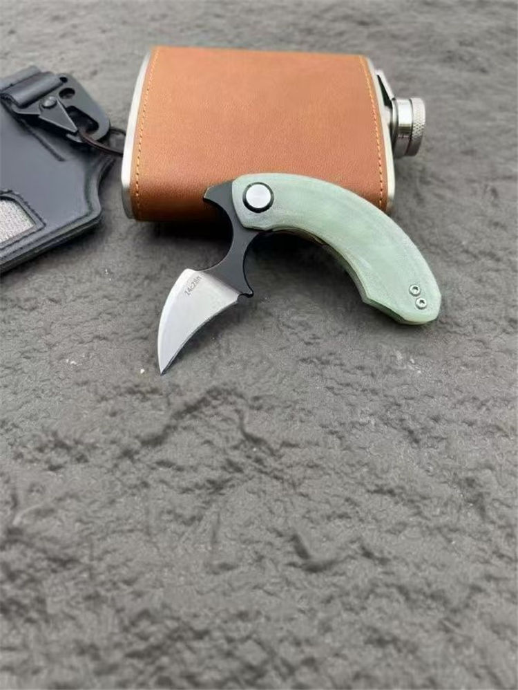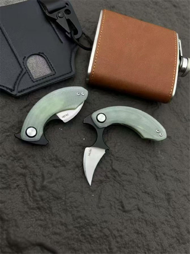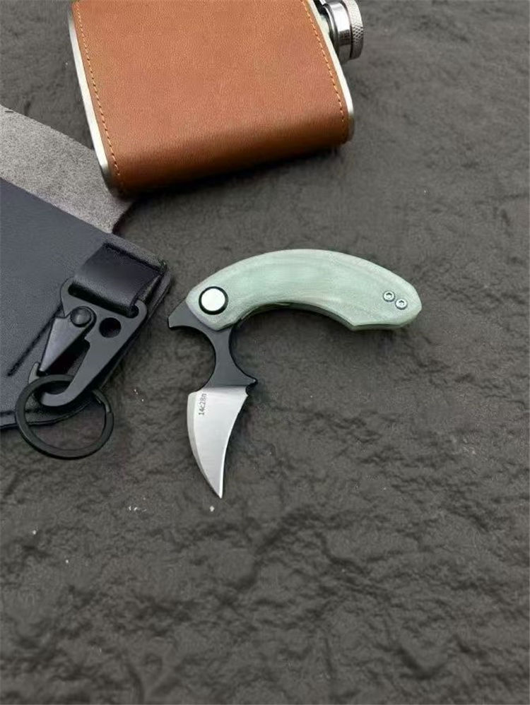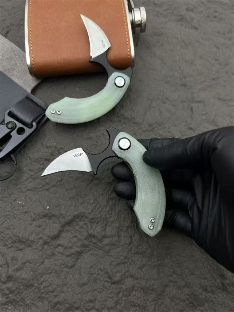 Strelit蝙蝠折叠手刺 全长:82mm 刃长:55mm 厚度:3mm 手柄:玉色G10滚珠轴承系统 刃材:14c28n 重量:56g