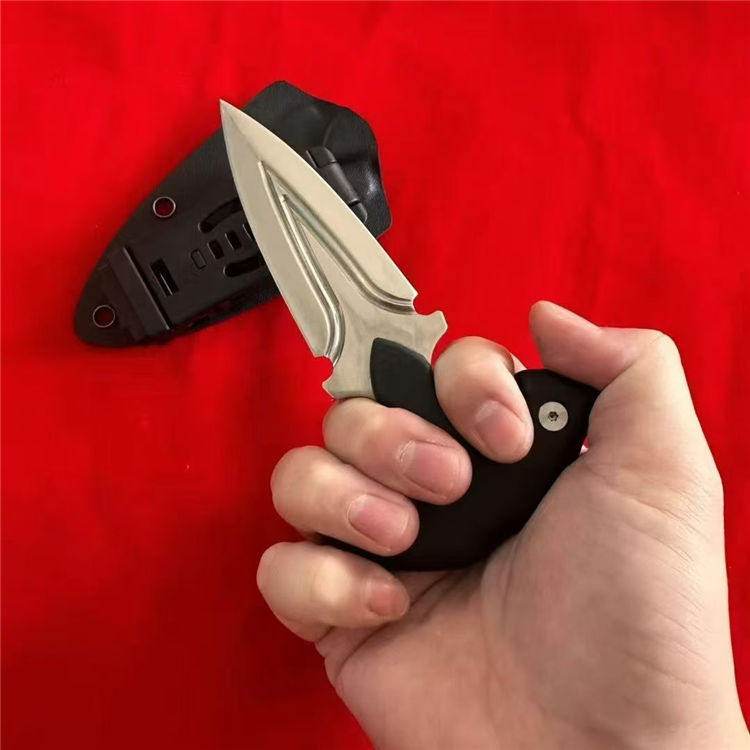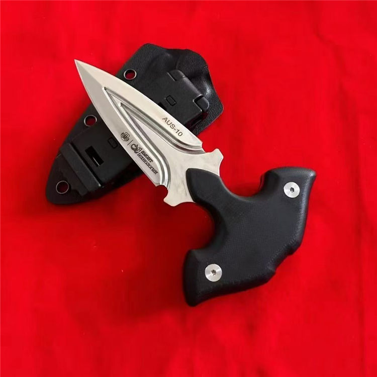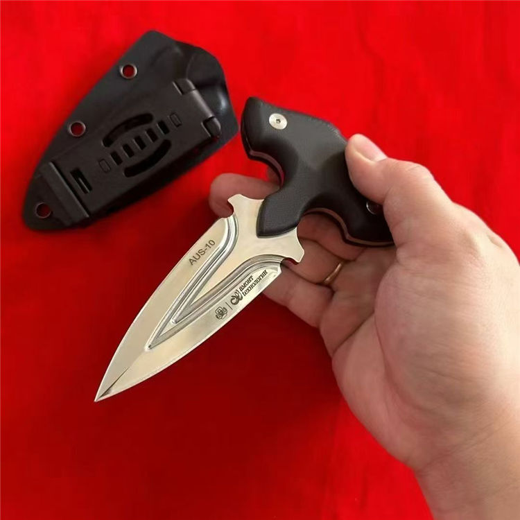 野牛手刺 全长:15cm 刃长:8cm 刃厚:3.5mm 刃材:AUS-10 硬度:60 柄材:G10 刀鞘:K鞘 重量:253g刀+鞘345g含包装