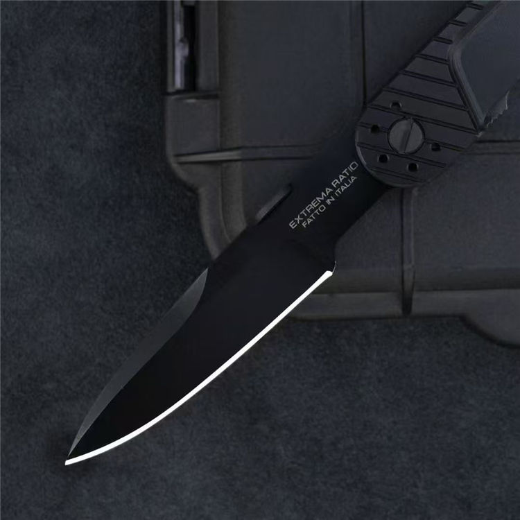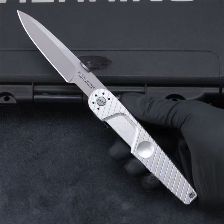 极端武力西装暴徒折刀 全长:22.2cm 刃长:8cm 刃厚:0.4cm 钢材:N690 柄材:6061航空铝 刃面:黑钛 硬度:58HRC 包装:原厂包装