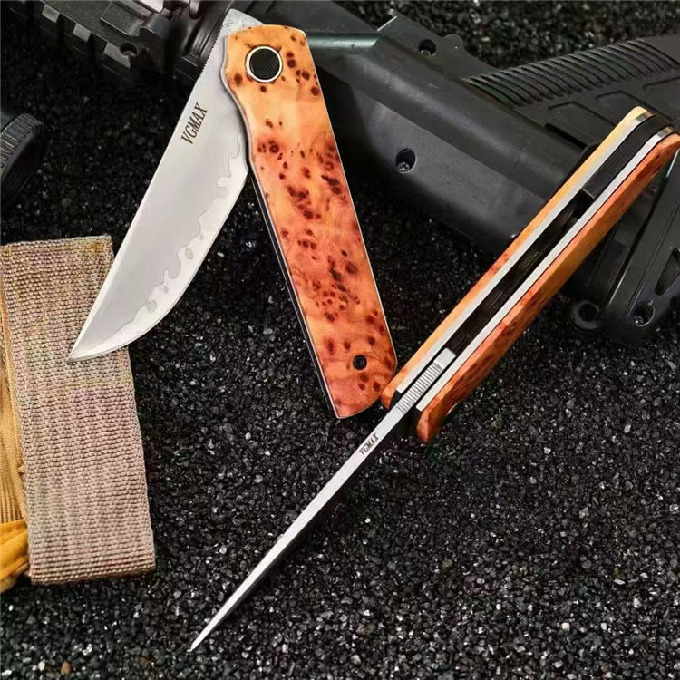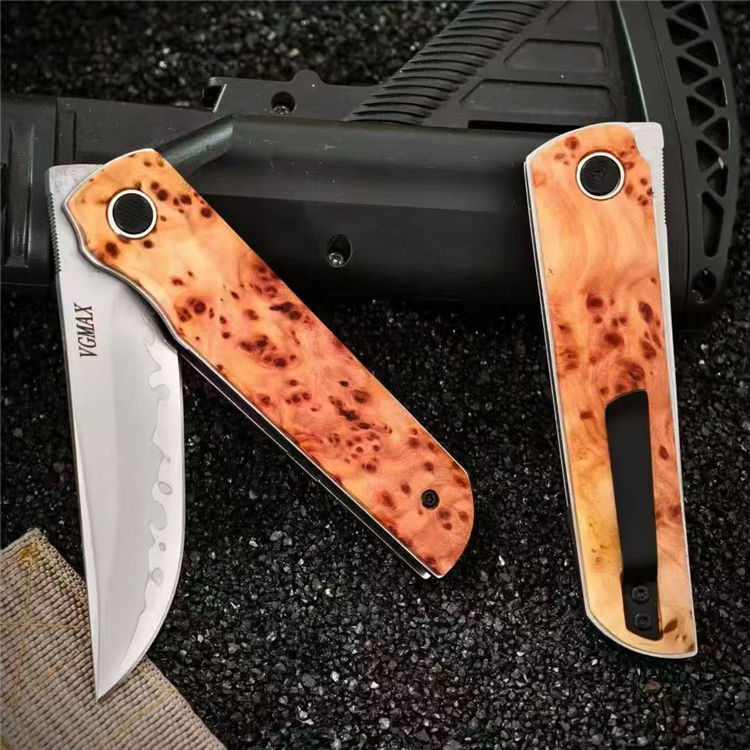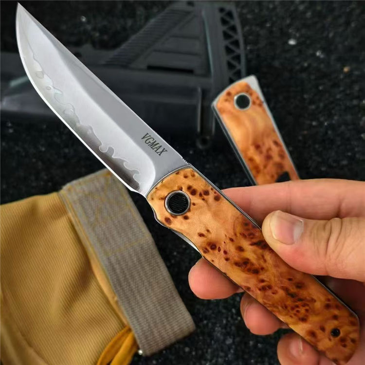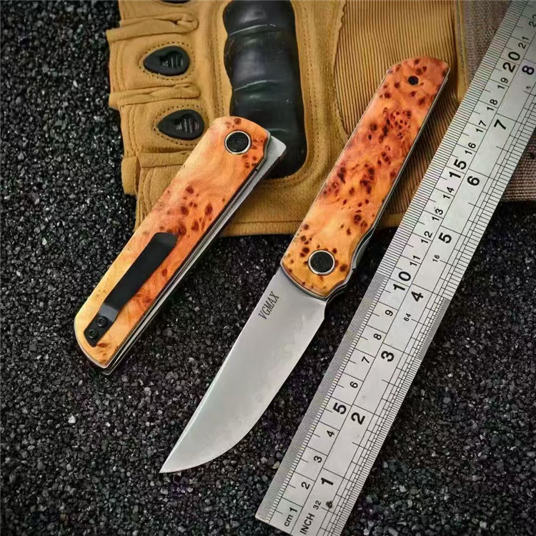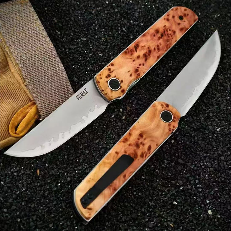 崖柏-破折刀 全长:19.3cm 刃长:8.5cm 刃厚:3.5mm 刃宽:2.3cm 钢材:VGMAX三合钢 柄材:精选崖柏木 柄长:11.3cm 硬度:60 重量:112g