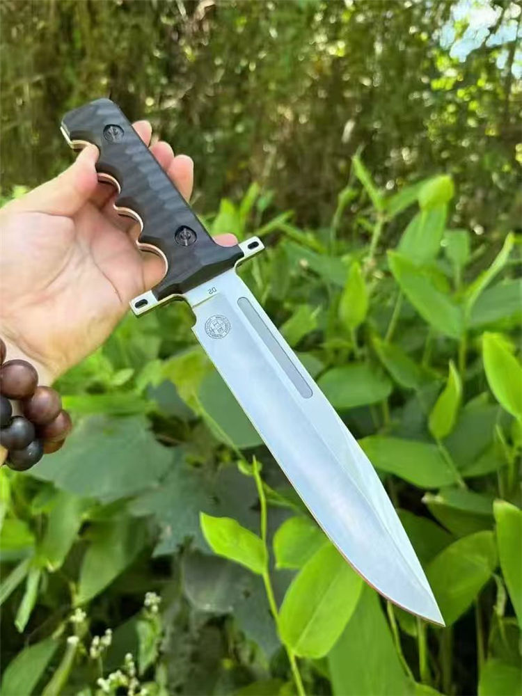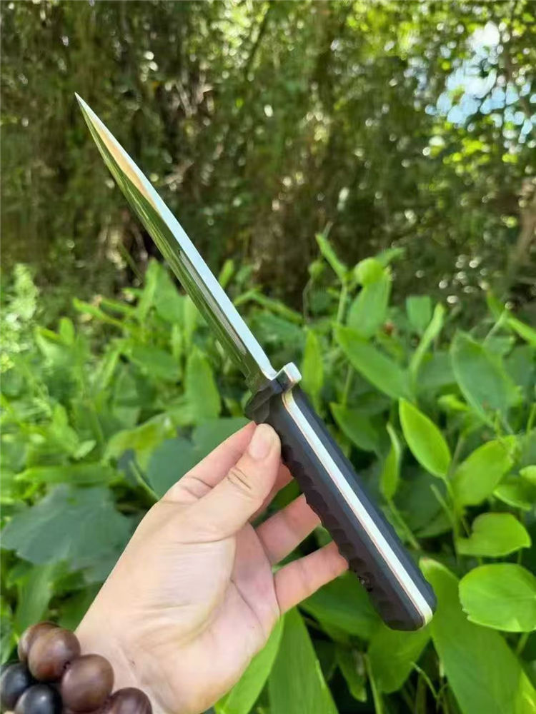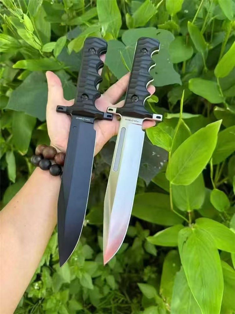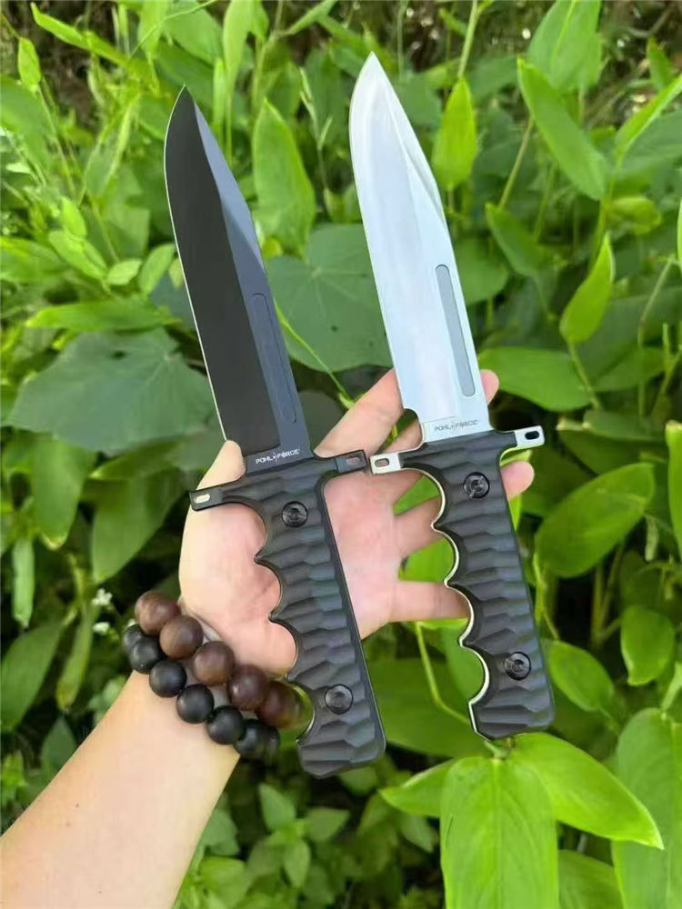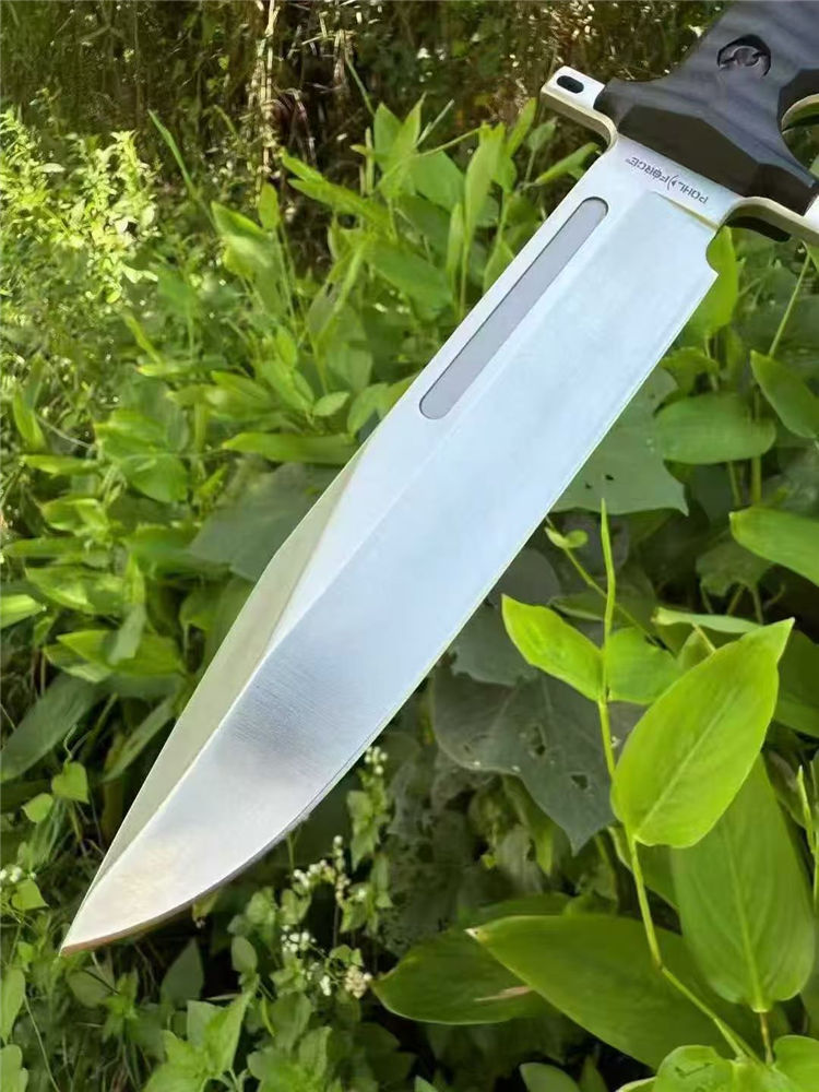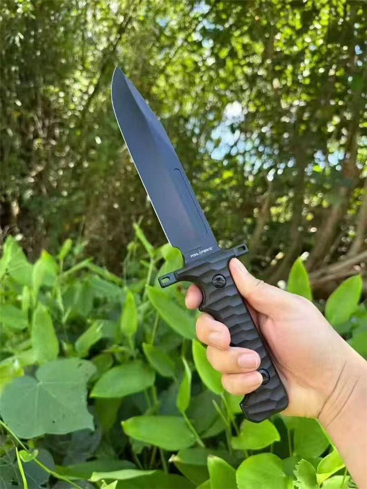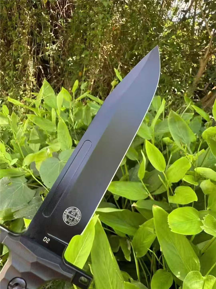 波尔武力直刀 总长:31.5cm 刃长:17cm 柄长:12.3cm 刃厚:5.8mm 刃宽:3.6cm(最宽处) 刃材:D2钢 刃面:砂光版/黑工艺处理版本 柄材:玻璃尼龙纤维 结构:一体龙骨 重量:461g(净重)599.5g(含刀鞘包装) 包装:玻纤鞘+纸盒