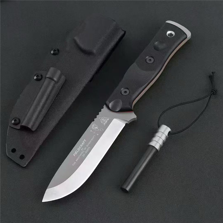 类型:生存刀,自带KYDEX刀鞘+打火石镁棒,佩戴方式,钢制360度灵活旋转皮带夹子