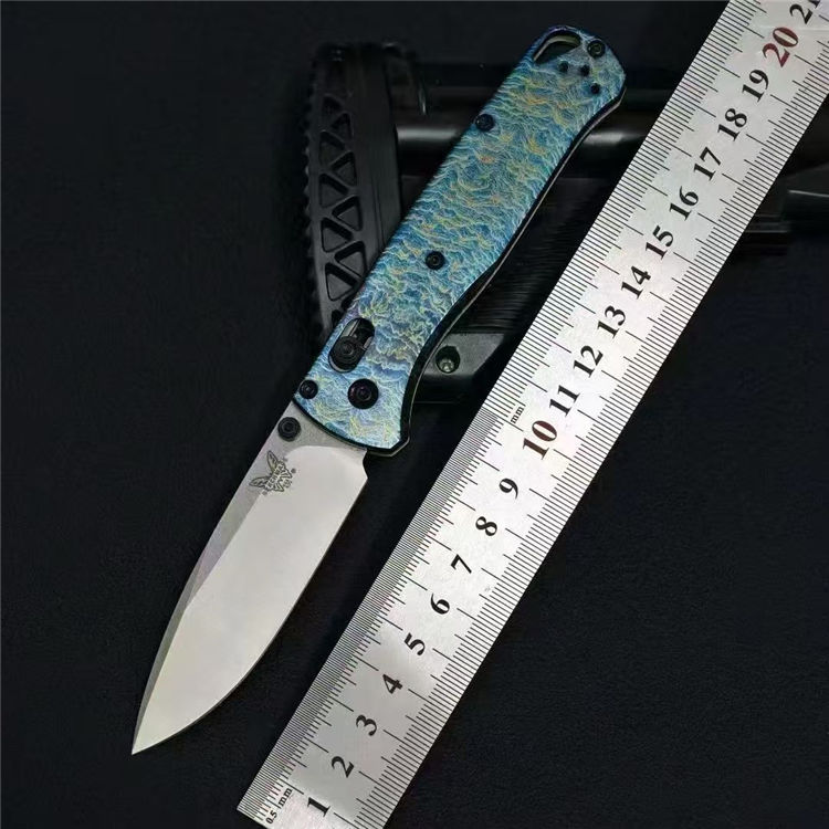 蝴蝶535BK闪电纹折刀 总长:187mm 闭合:105mm 刃长:80MM 厚度:2.5mm 材质:M390 表面:数控水磨 柄材:钛合金 锁类:轴 重量:100g(167g含包装) 工艺:全数控CNC手柄加工+数控水磨加工