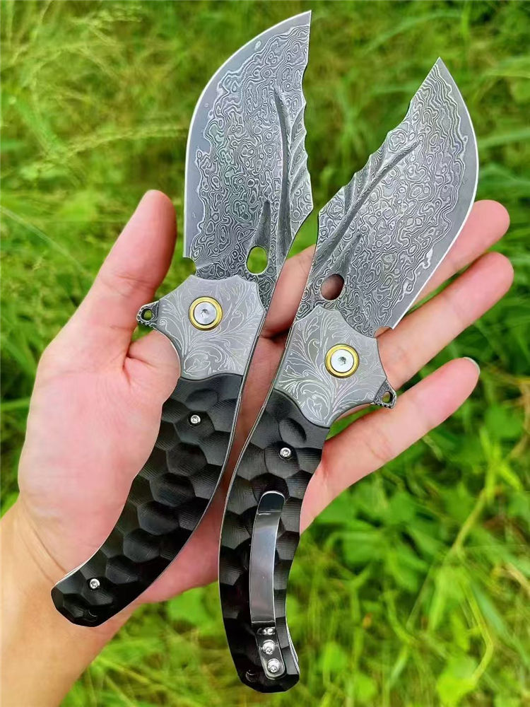 大马士革胖虎折刀 总长:20cm 刃长:8cm 折合:11.5cm 刃厚:3mm 刃宽:4cm 钢材:进口锻造大马士革VG10钢制造 热处理:真空深冷热处理,油淬回火,保持韧性 硬度:60HRC之间 柄材:老料黑檀木 开刃方式:水冷多次开刃 包装:EVA内衬包装手工盒子