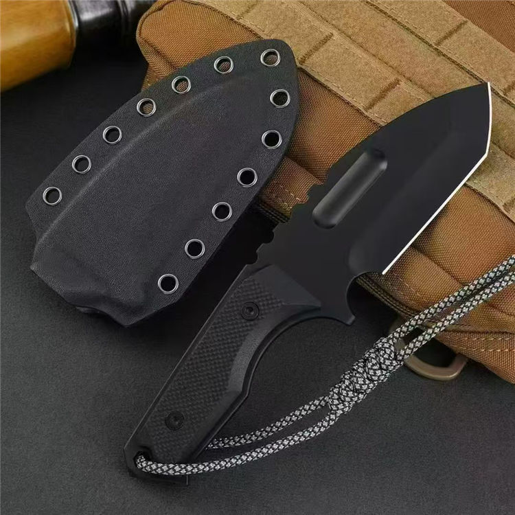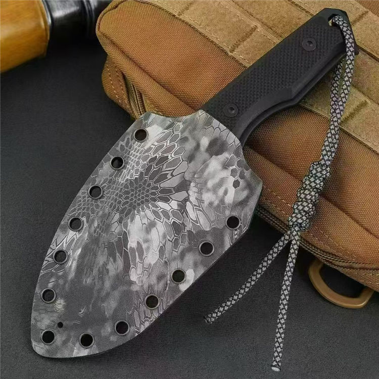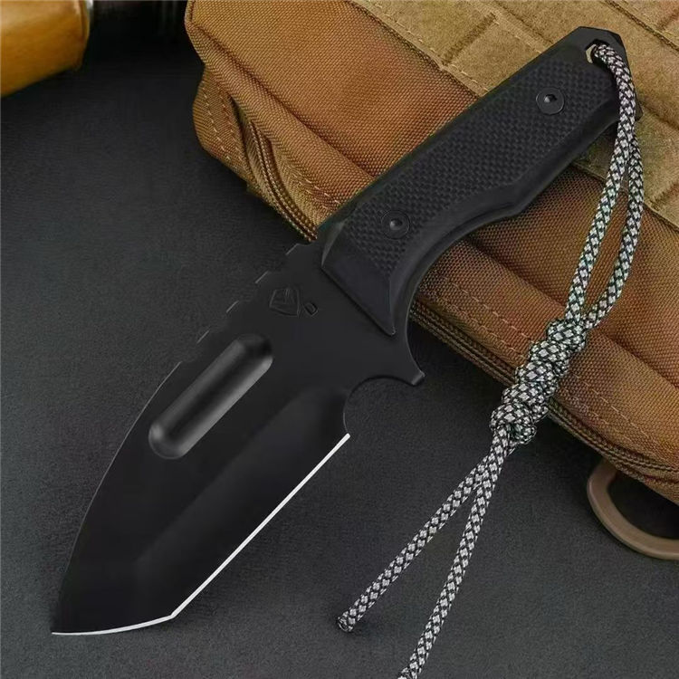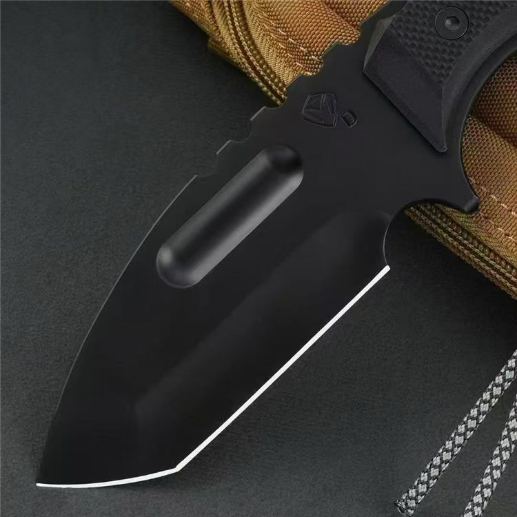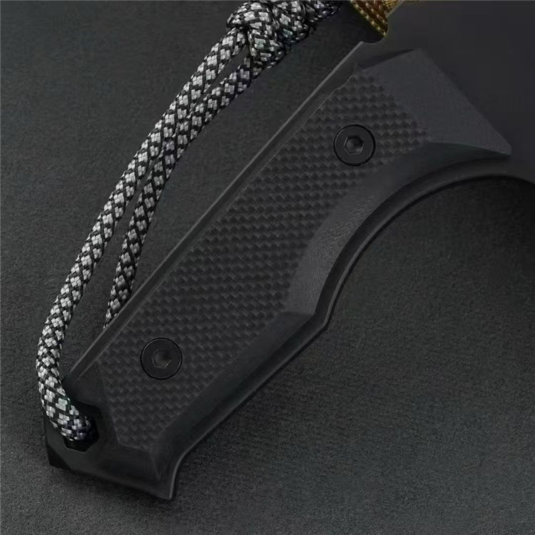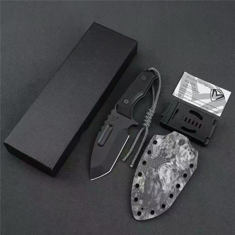梅德福德暴力天使直刀 全长:22.5cm 刃长:9.5cm 刃厚:0.6cm 钢材:CPM-3V 手柄:G10 表面:黑钛 刃口:数控分段研磨 硬度:61HRC 刀鞘:双色迷彩纹K鞘