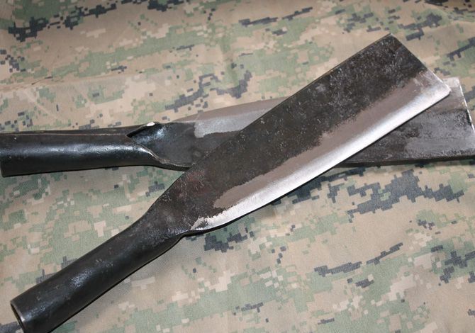 全 长:34.5cm 刃 长:22.5cm 柄 长:12cm 刃 宽:7cm 刃 厚:6mm 刃 材:锻打汽车弹簧钢 重 量:570克 硬 度:56-57HRC 表 面:锻打 柄 材:全钢